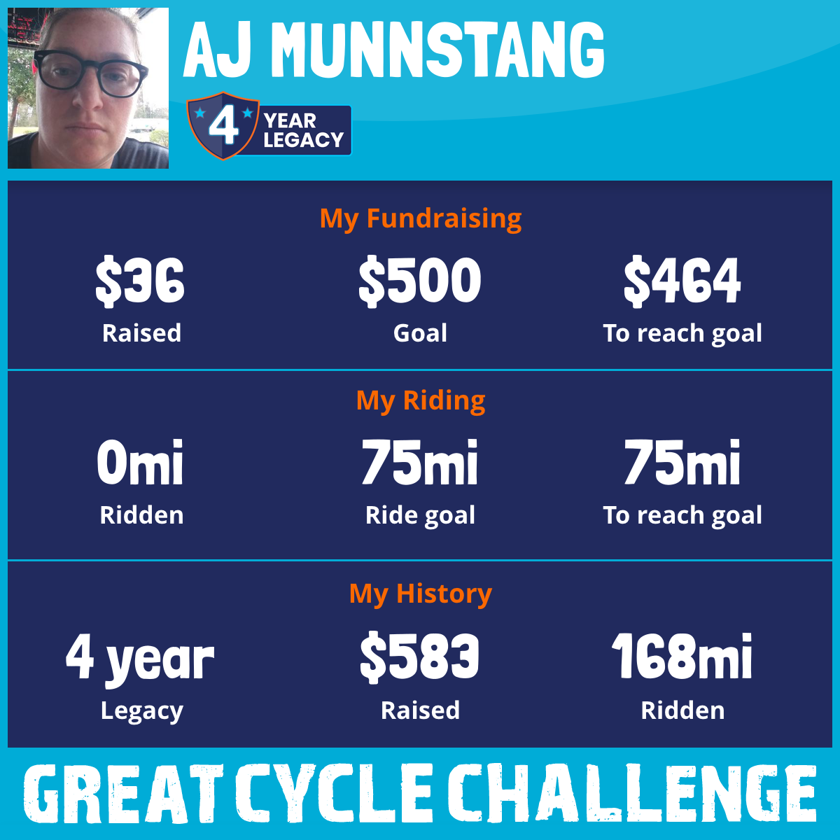 50 mi Ridden$116 Raised2023
