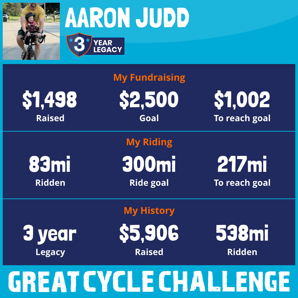 250 mi Ridden$1,601 Raised2025