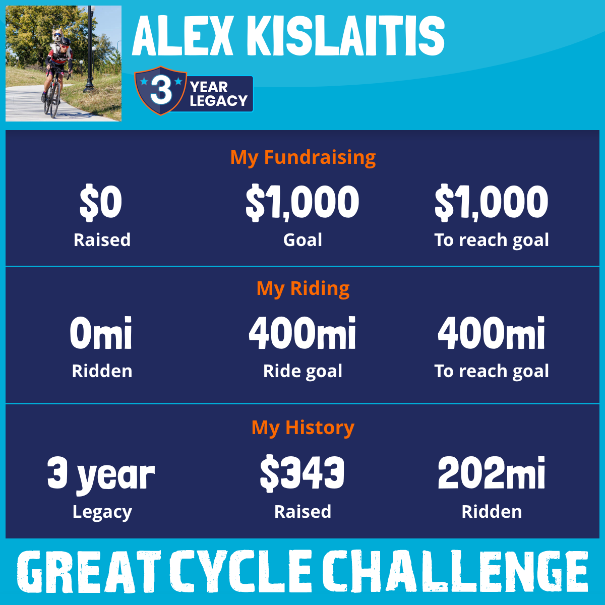 I am riding 400 mi to fight kids' cancer and save little lives. Please sponsor me to support my challenge!