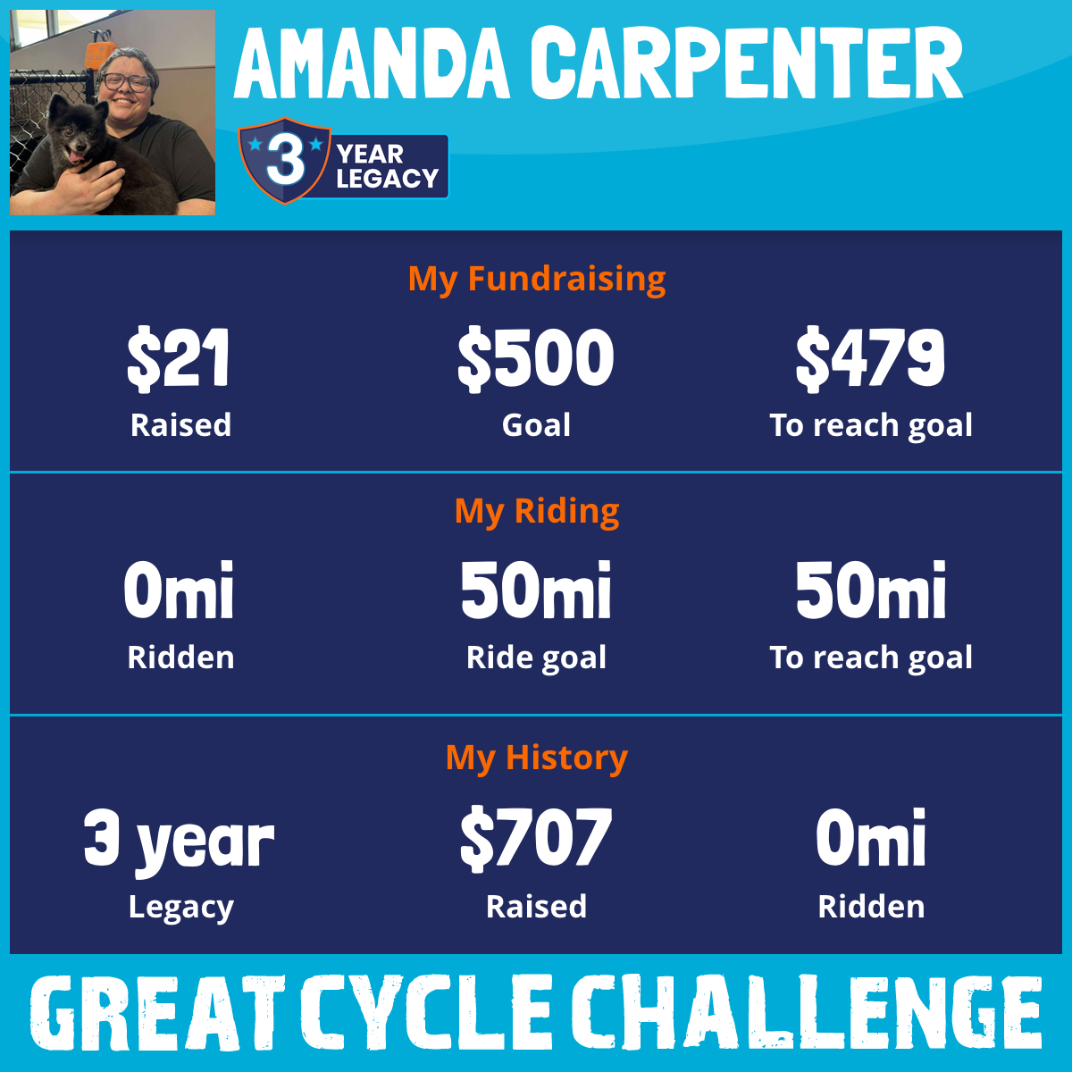 I am riding 50 mi in memory of my dad, Craig O’Neil Carpenter. Please sponsor me and support my challenge to fight kids' cancer and save little lives.