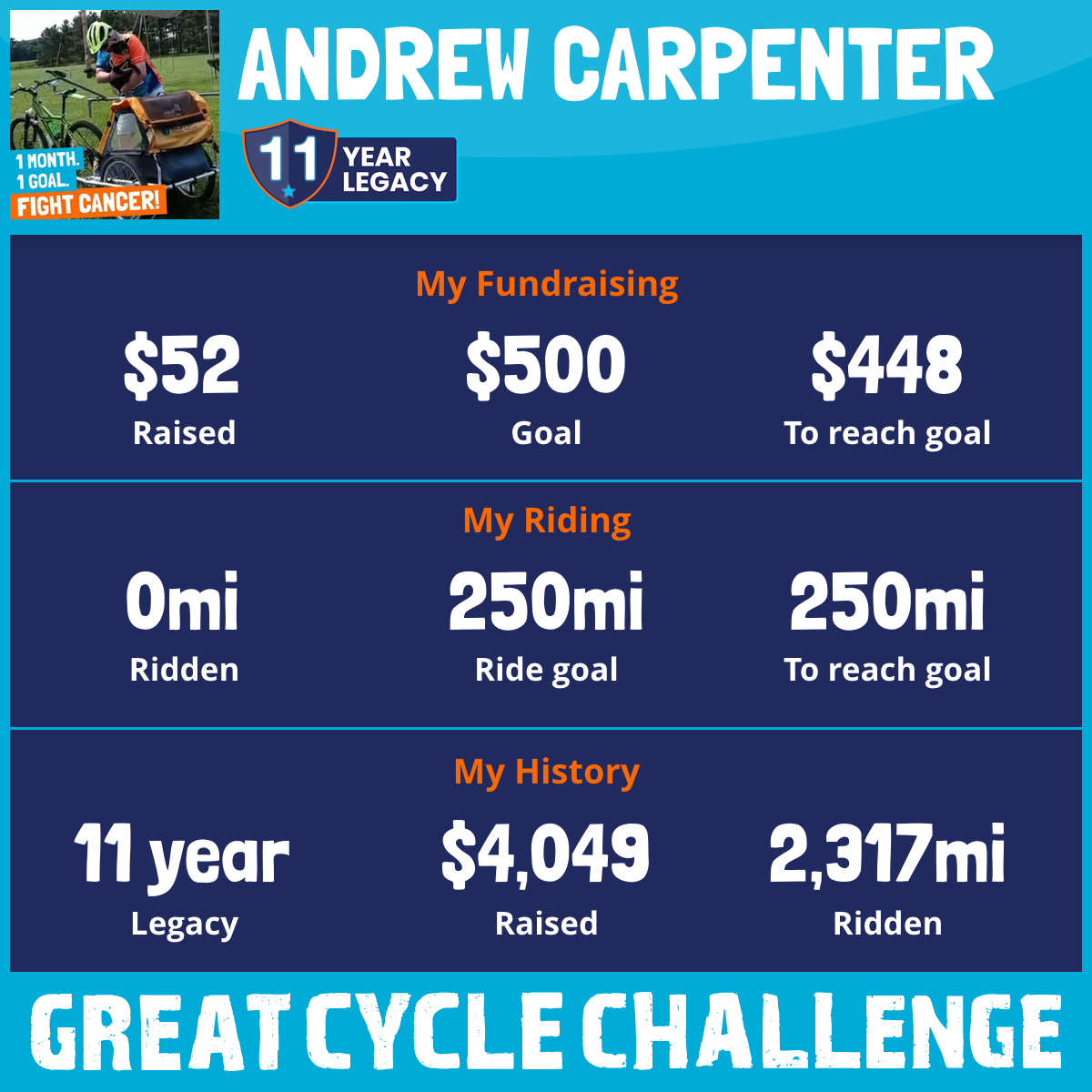 250 mi Ridden$185 Raised2017