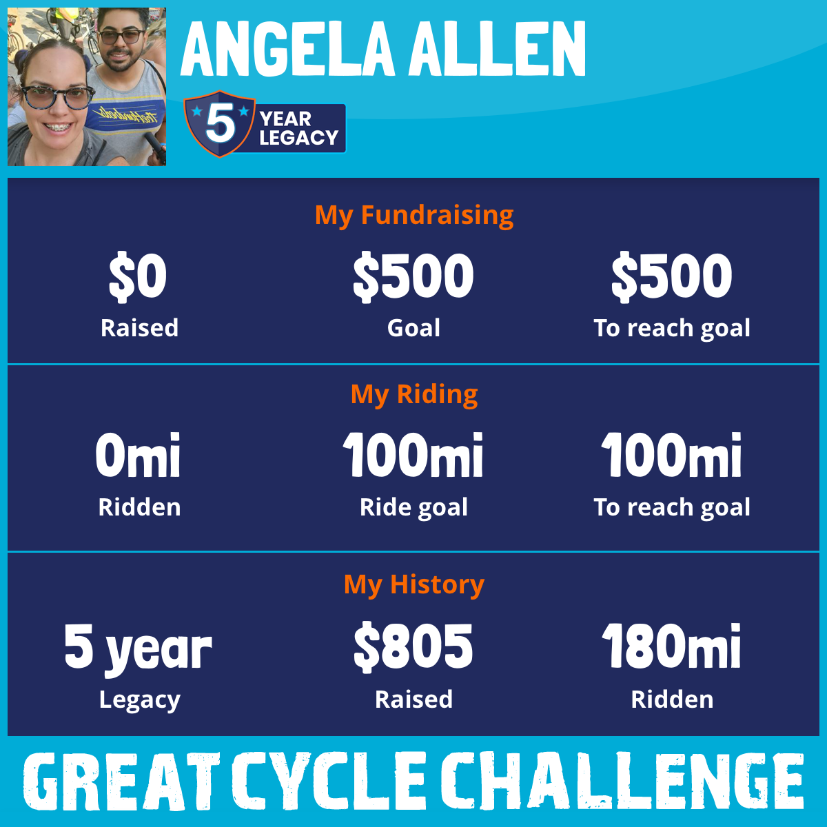 I am riding 100 mi for Mishele. Please sponsor me and support my challenge to fight kids' cancer and save little lives.