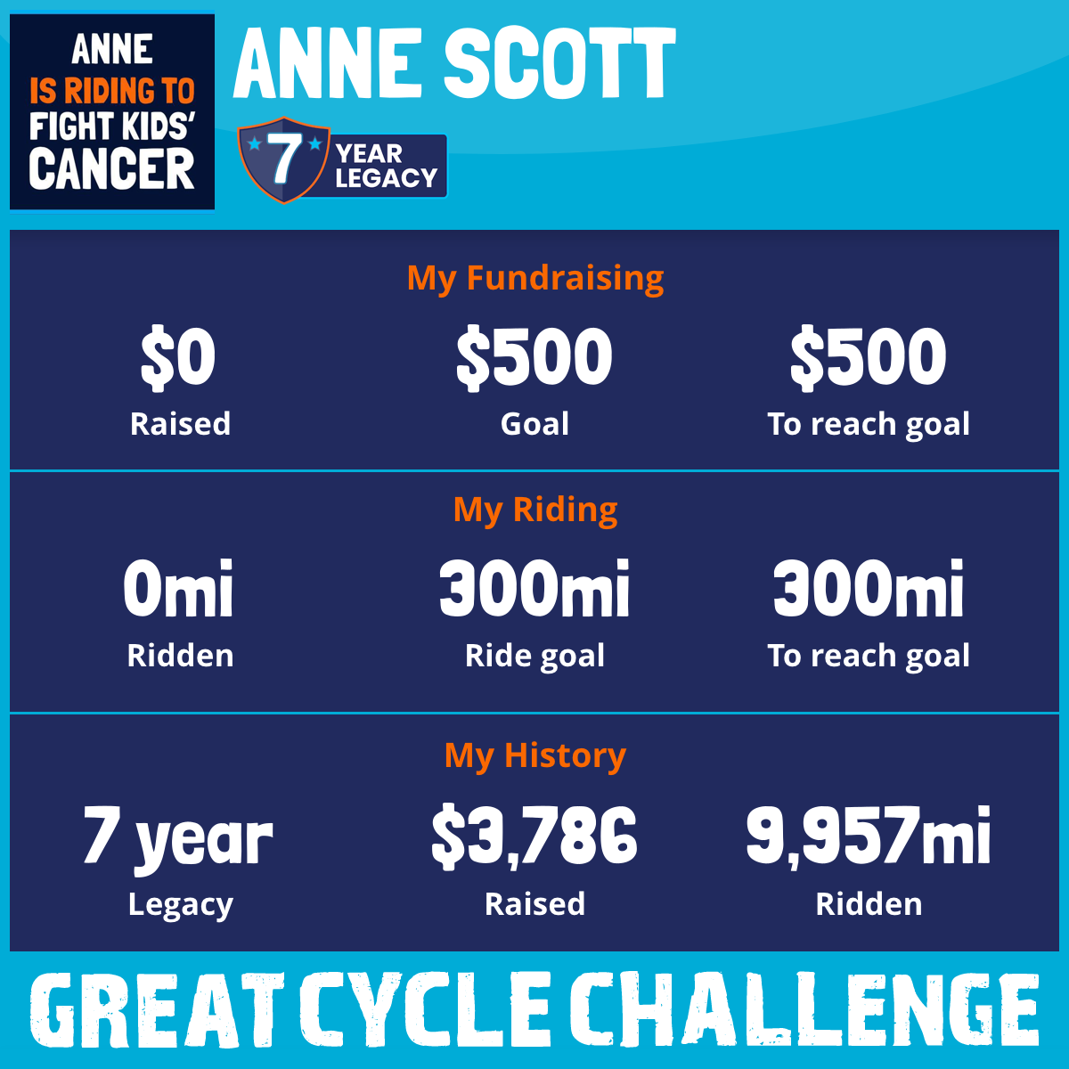 I am riding 300 mi to fight kids' cancer and save little lives. Please sponsor me to support my challenge!