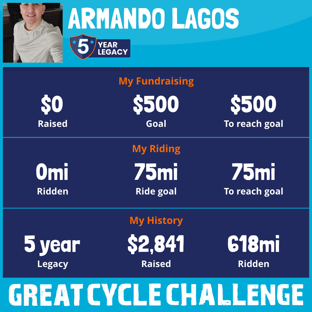 I am dedicating this year's Great Cycle Challenge to Asenath Epps, Cheryl & Jim Smith, and Josefina Aguilar. Overcome through Courage and Strength.