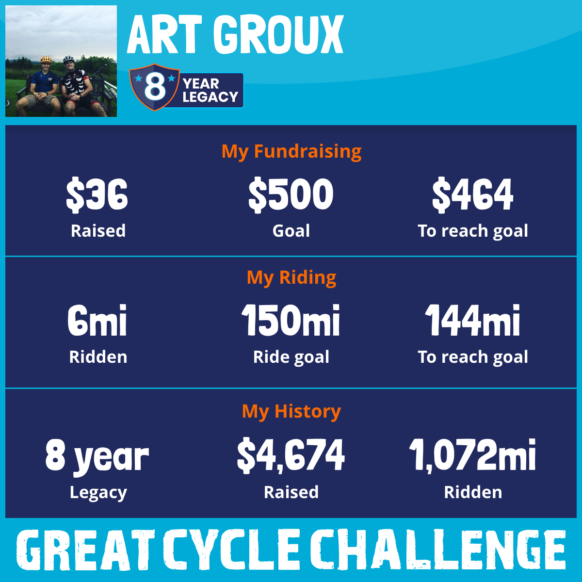 I am riding 150 mi to fight kids' cancer and save little lives. Please sponsor me to support my challenge!