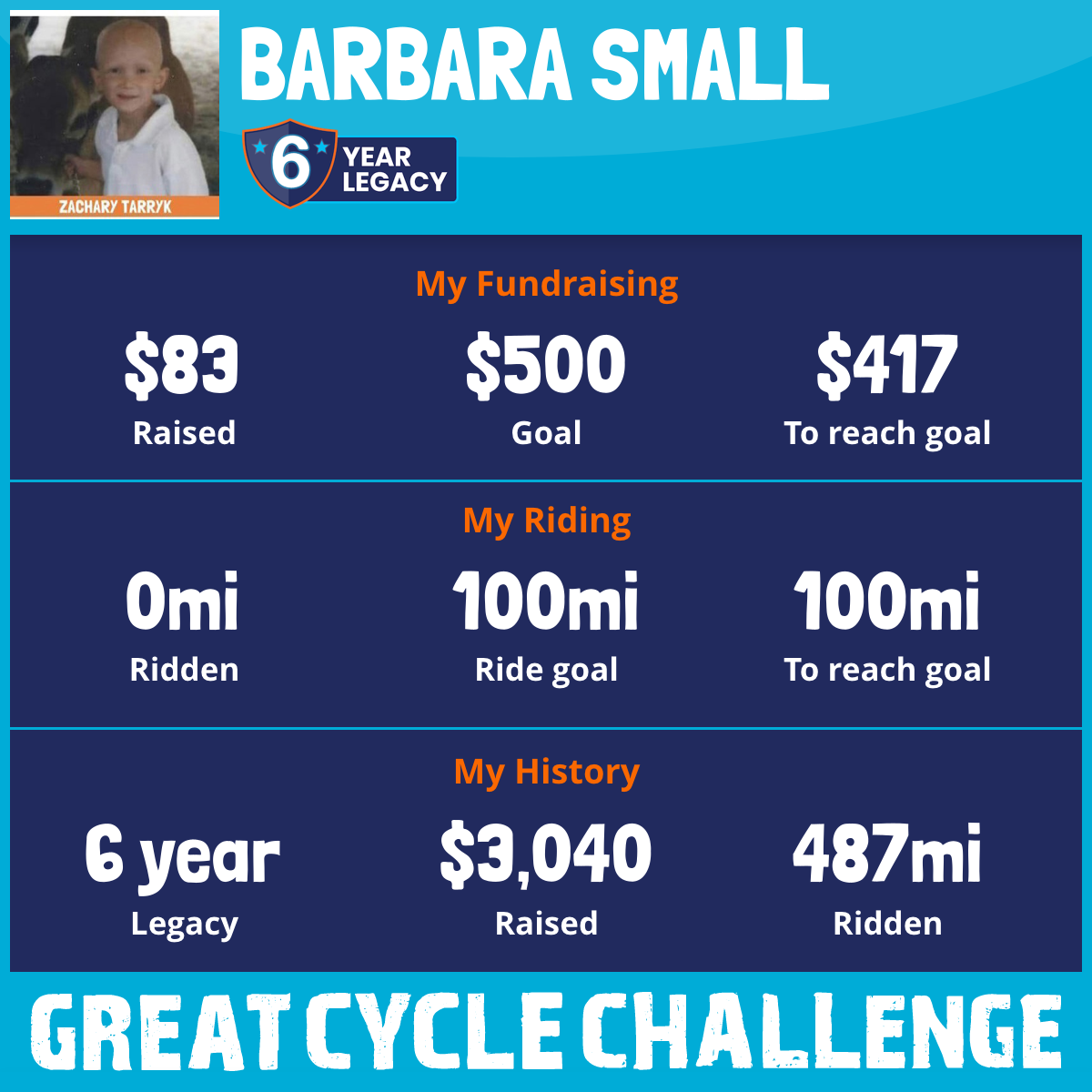 Zachary is one of the most loving, caring, helpful people I have the honor to know. He is a genuinely nice person to be around. Zach puts everyone else's needs and wants in front of his own, he will go out of his way to lend a helping hand. Also riding to honor my 3 sister-in-laws whom are also very giving of themselves. Always taking part in raising cancer awareness and helping raise funds to help win the battle against cancer. All 3 have faced cancer and sent cancer packing! 💪🏻💞💪🏻💞💪🏻💞💪🏻💞 It is an honor to be riding for these 4 strong, courageous and beautiful fighters.