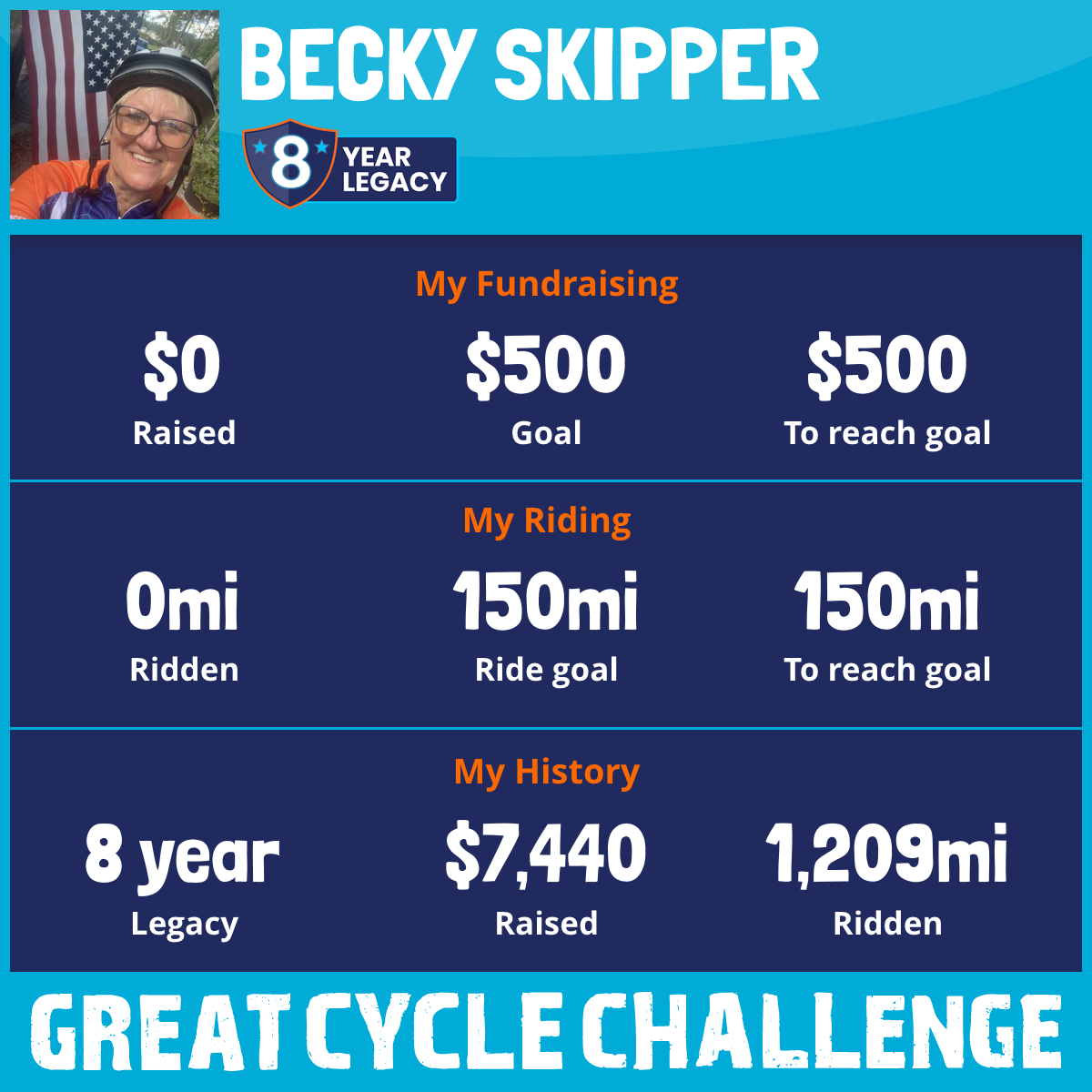 I've raised $0 My goal is $500 Donate Now