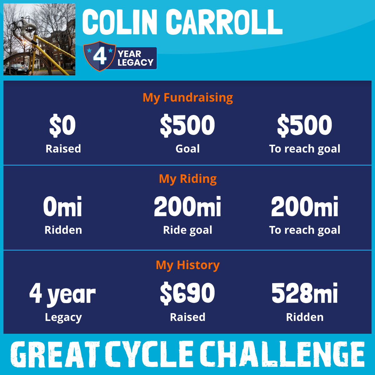 I am riding 200 mi in memory of my dad, Kevin Carroll. Please sponsor me and support my challenge to fight kids' cancer and save little lives.