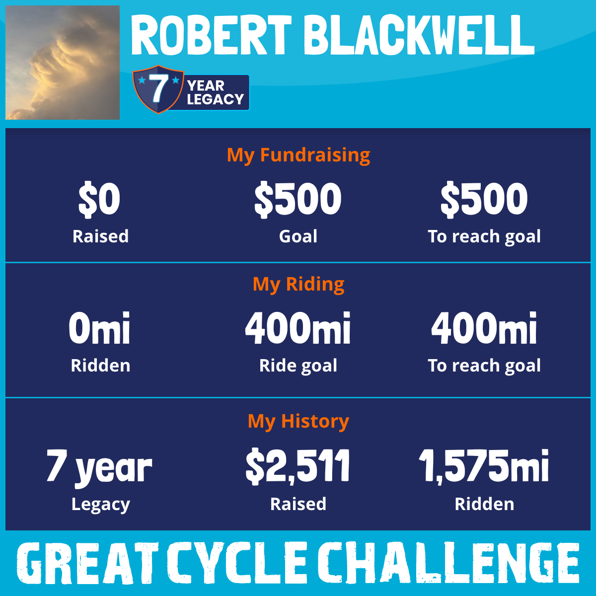 I am riding 400 mi for Multiple friends. Please sponsor me and support my challenge to fight kids' cancer and save little lives.