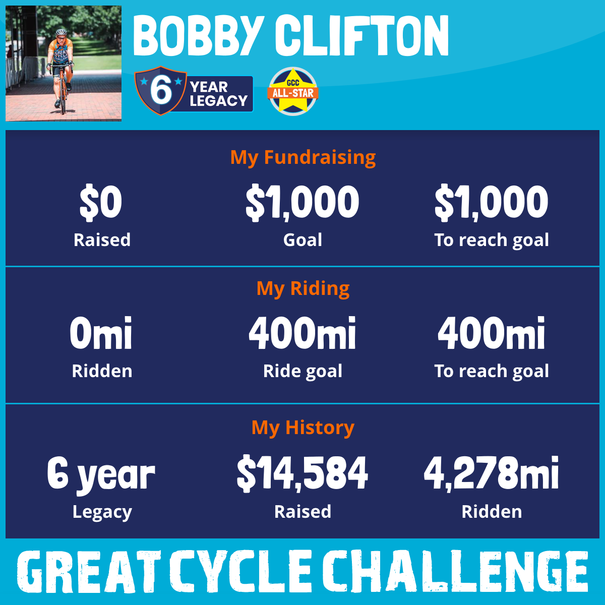 1,217 mi Ridden$5,607 Raised2025