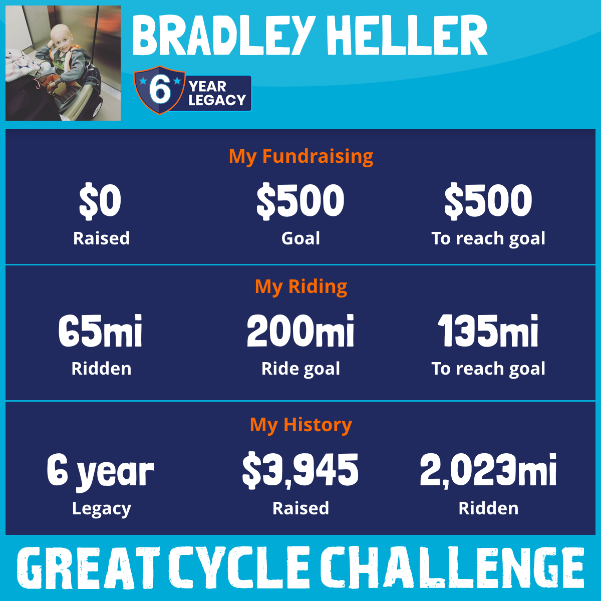I am riding 200 mi in memory of Abel Alan Heller #Beezstrong. Please sponsor me and support my challenge to fight kids' cancer and save little lives.