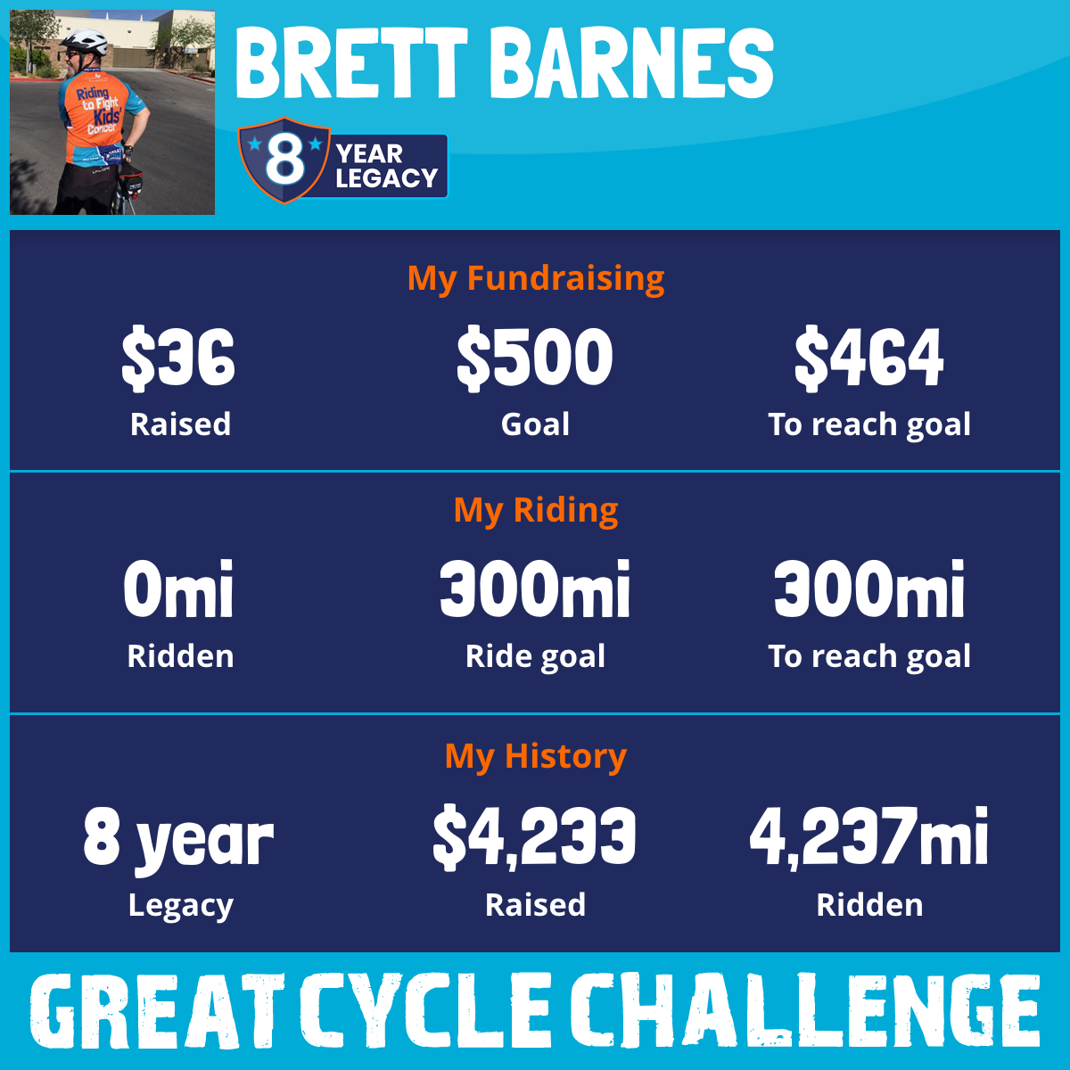 I am riding 300 mi for Rockin Dave. Please sponsor me and support my challenge to fight kids' cancer and save little lives.