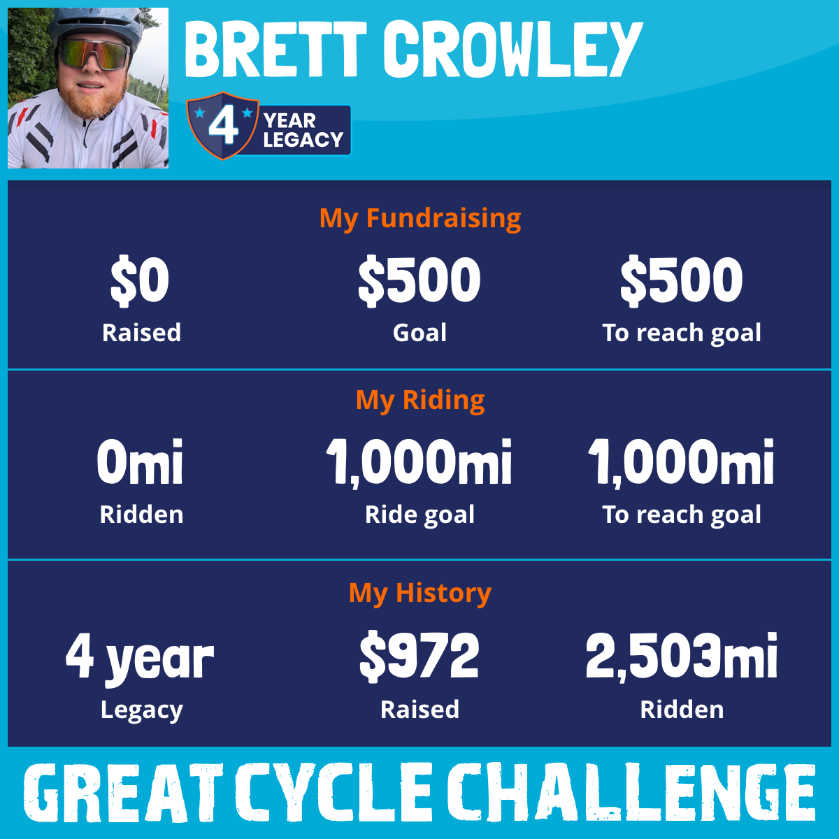 1,001 mi Ridden$180 Raised2025