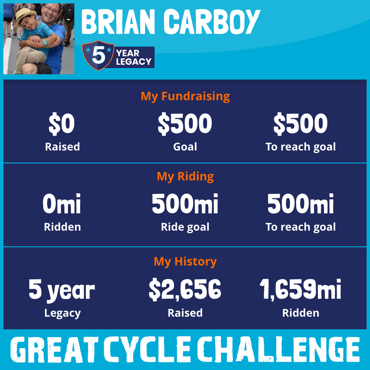 I am riding 500 mi for Roxanne, Caroline, Grandpa Neil, Aunt Joy, Grandma Ethyl, Uncle Kenny,. Please sponsor me and support my challenge to fight kids' cancer and save little lives.