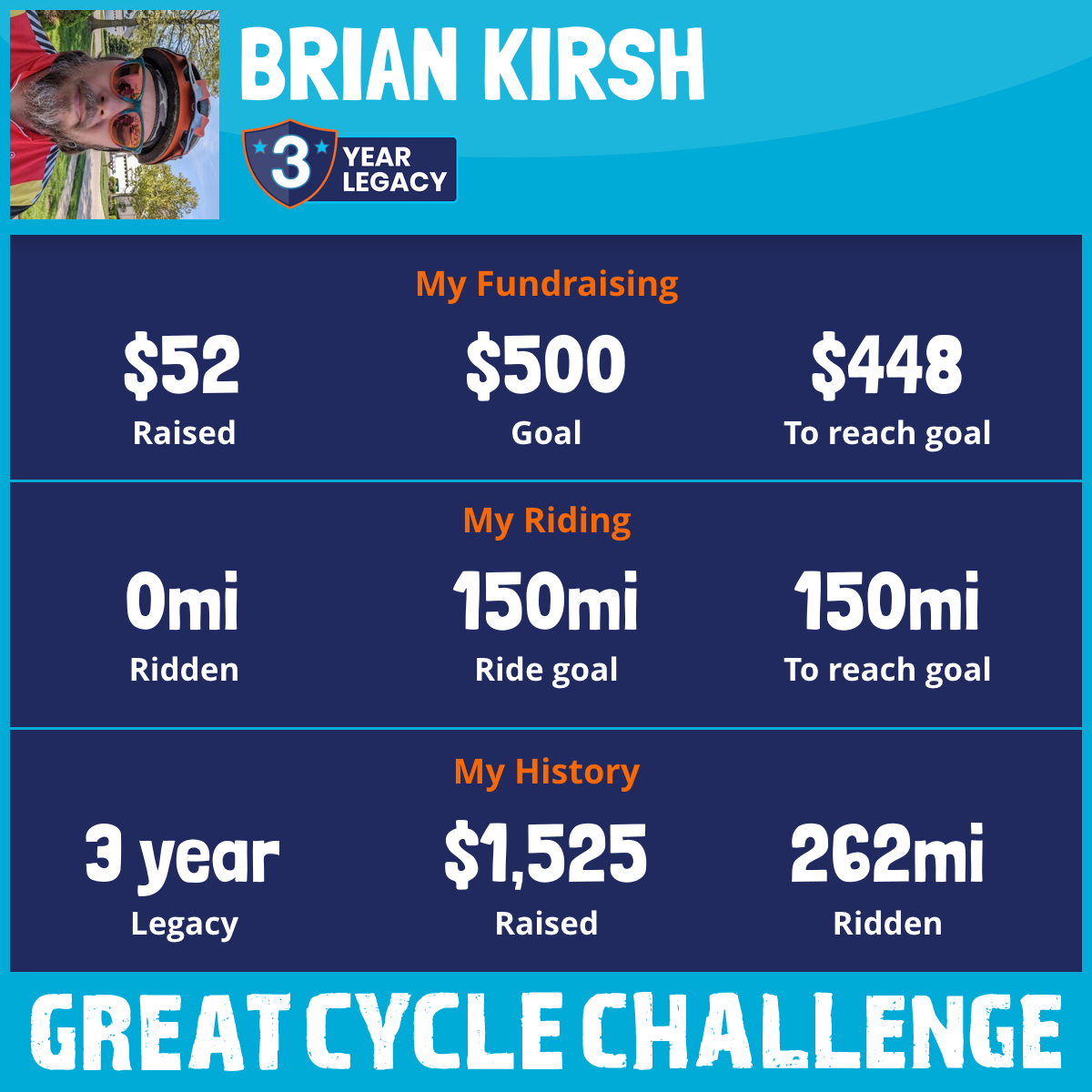 I am riding 150 mi to fight kids' cancer and save little lives. Please sponsor me to support my challenge!