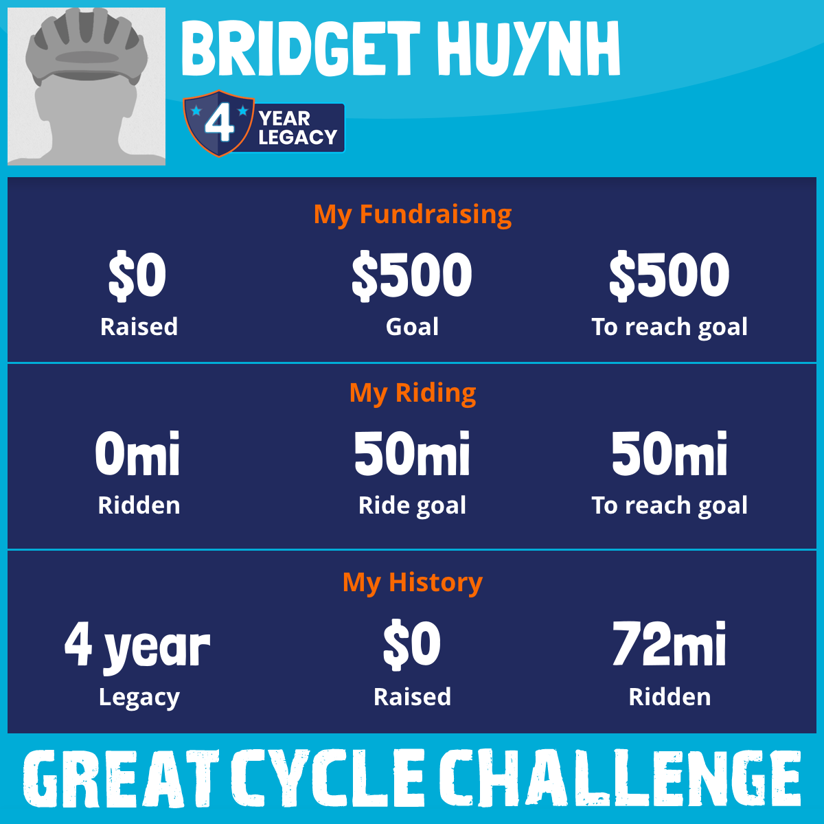 I am riding 50 mi to fight kids' cancer and save little lives. Please sponsor me to support my challenge!