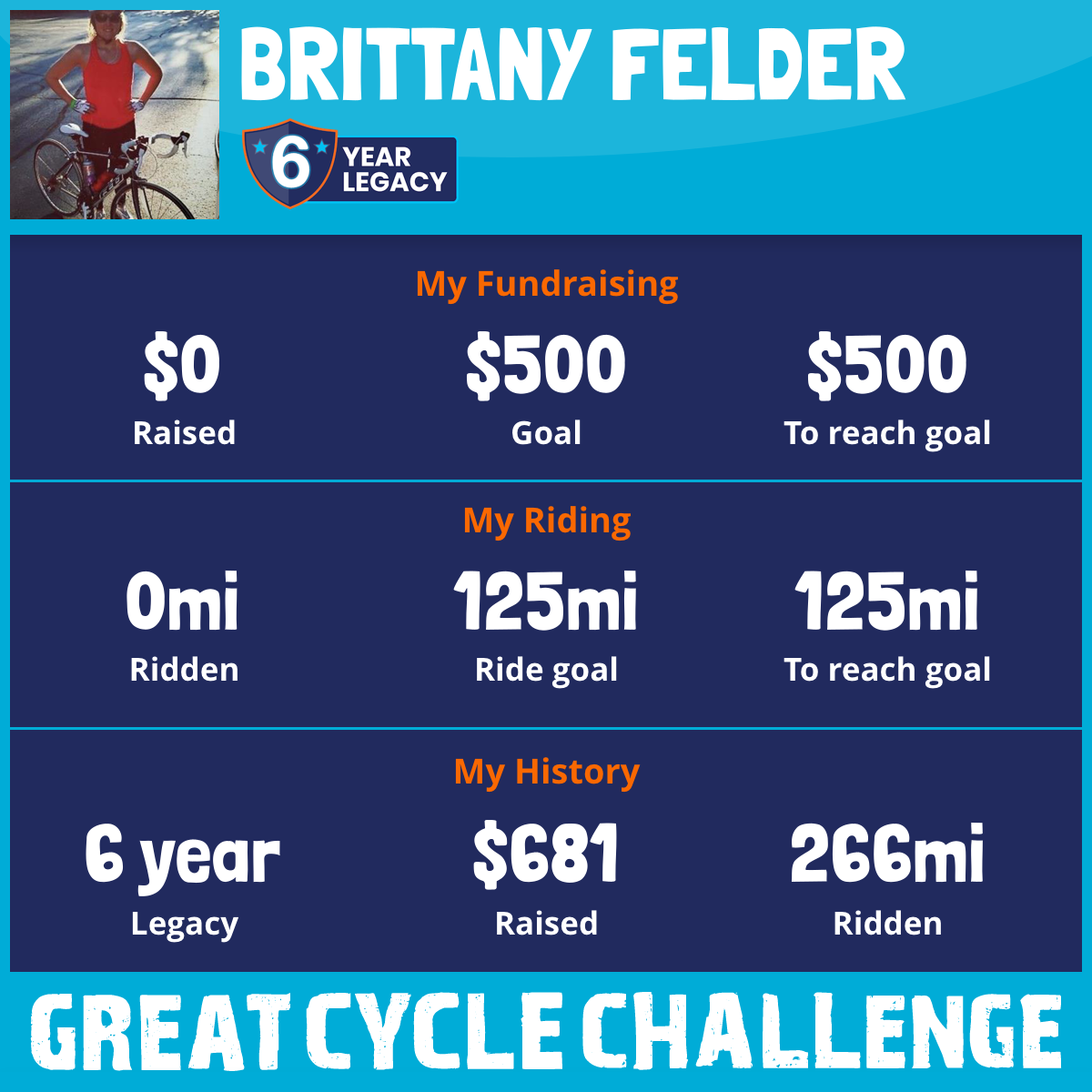 I am riding 125 mi to fight kids' cancer and save little lives. Please sponsor me to support my challenge!