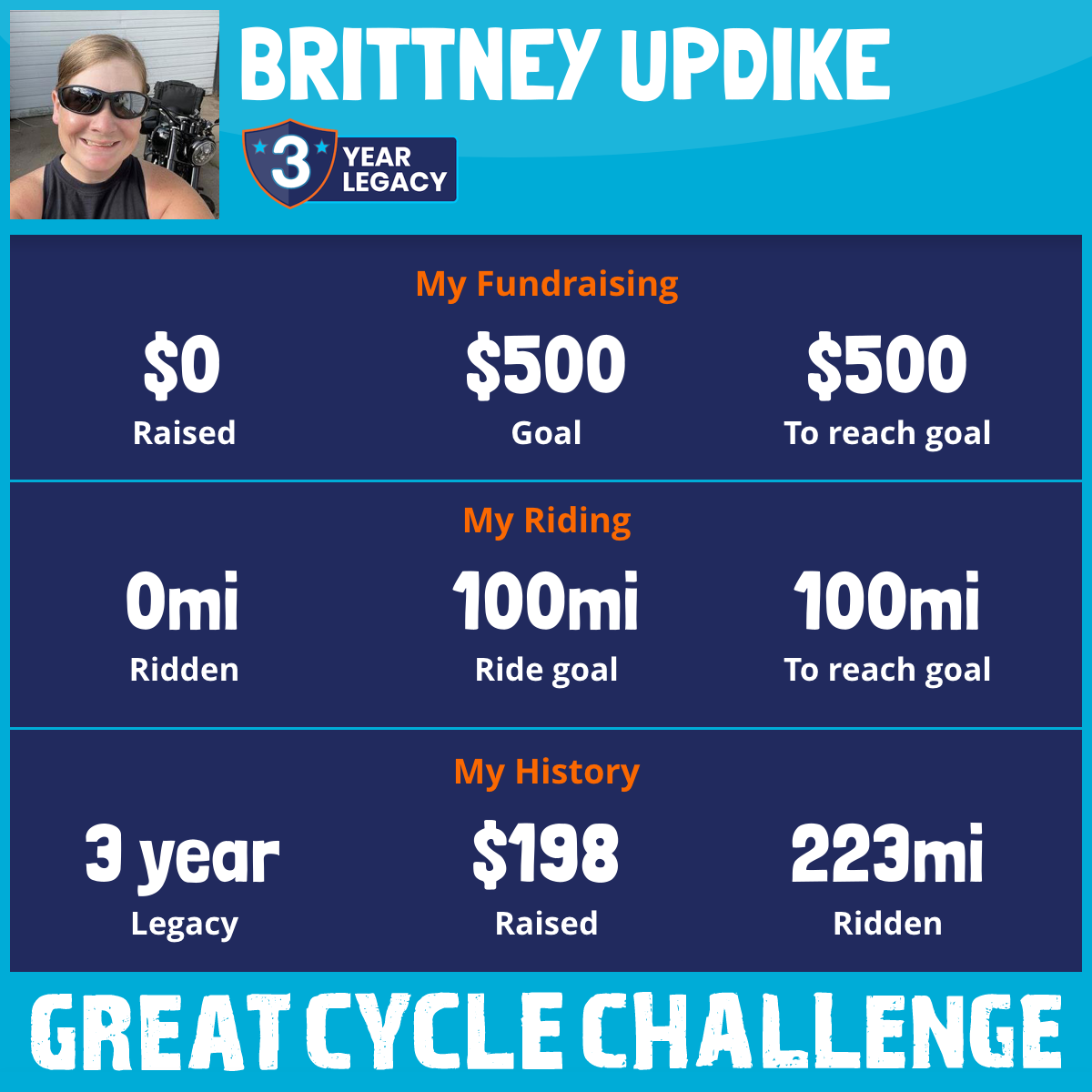 I am riding 100 mi to fight kids' cancer and save little lives. Please sponsor me to support my challenge!