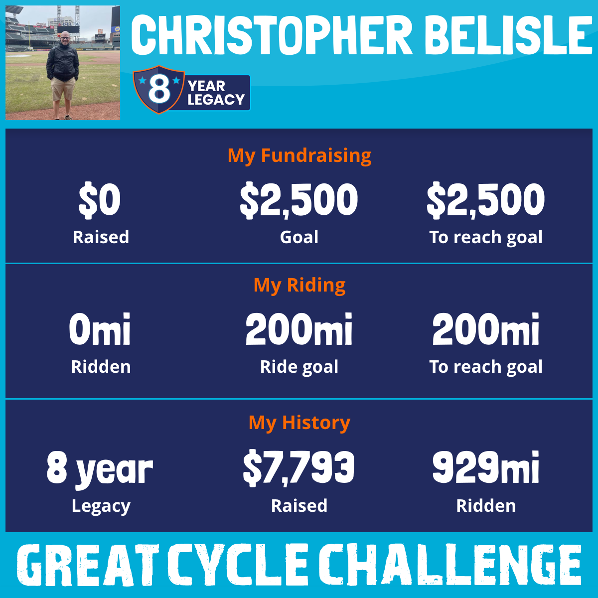 So I am raising funds through my challenge to help these kids and support Children's Cancer Research Fund to allow them to continue their work to develop lifesaving treatments and find a cure for childhood cancer. My goal is $2500 in funds & riding 250 miles.
