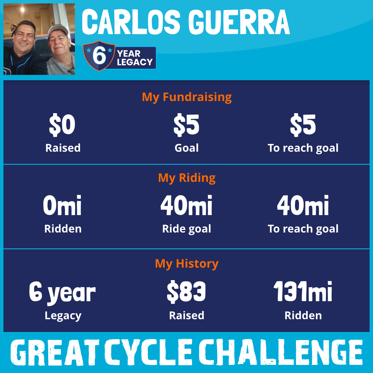 I am riding 40 mi for Israel Guerra. Please sponsor me and support my challenge to fight kids' cancer and save little lives.