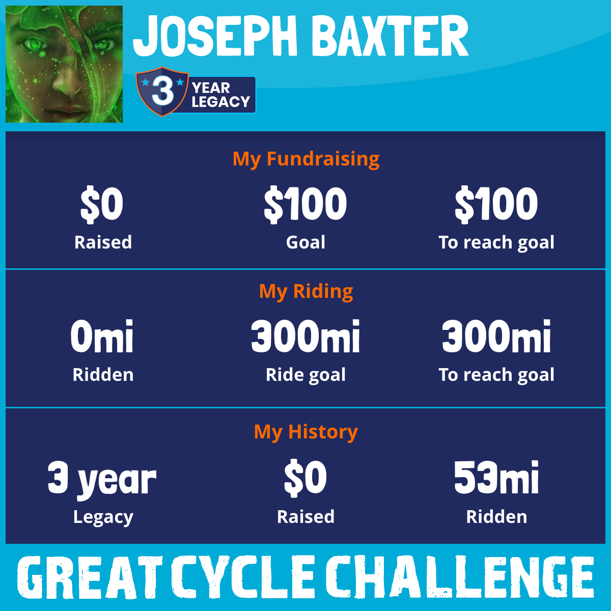 I am riding 300 mi for Kenny. Please sponsor me and support my challenge to fight kids' cancer and save little lives.