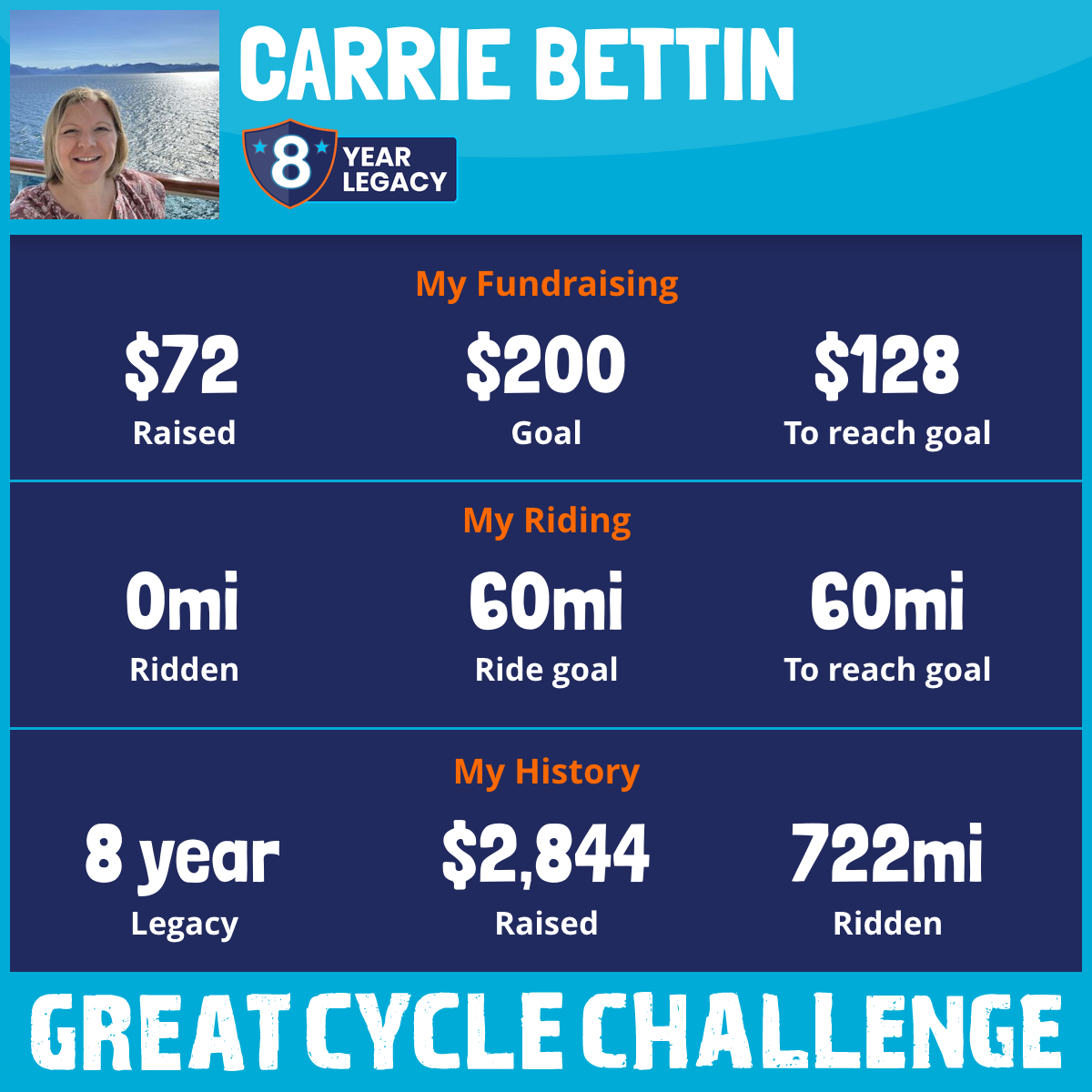 I am riding 60 mi in memory of Judy Powell. Please sponsor me and support my challenge to fight kids' cancer and save little lives.