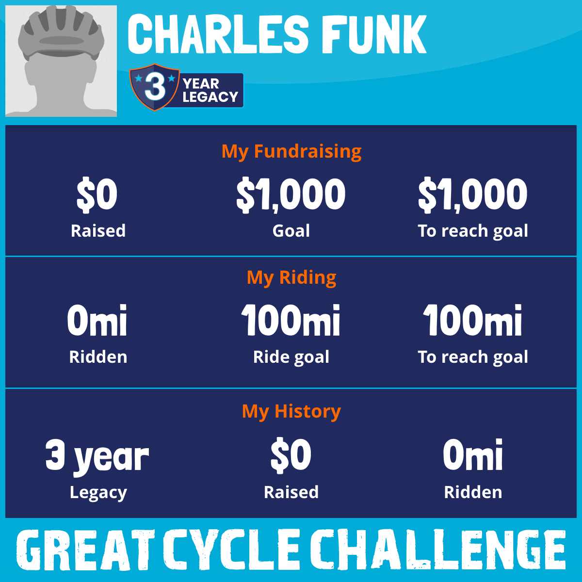 I am riding 100 mi in memory of my dad, Charles. Please sponsor me and support my challenge to fight kids' cancer and save little lives.