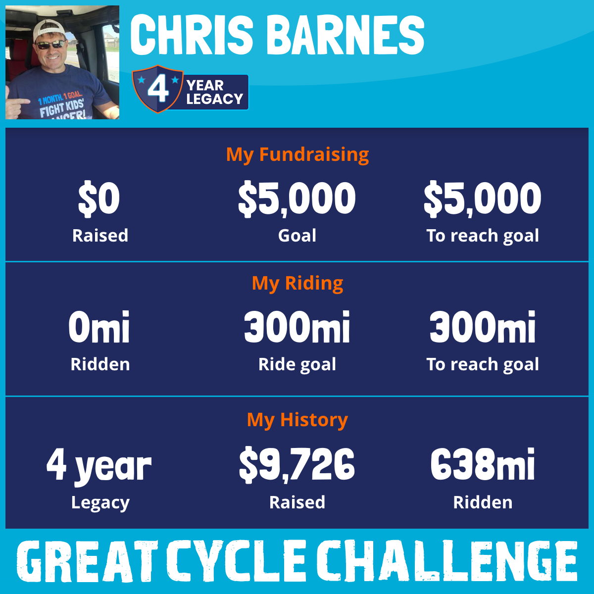 I am riding 300 mi in memory of my dad, Joe Barnes. Please sponsor me and support my challenge to fight kids' cancer and save little lives.