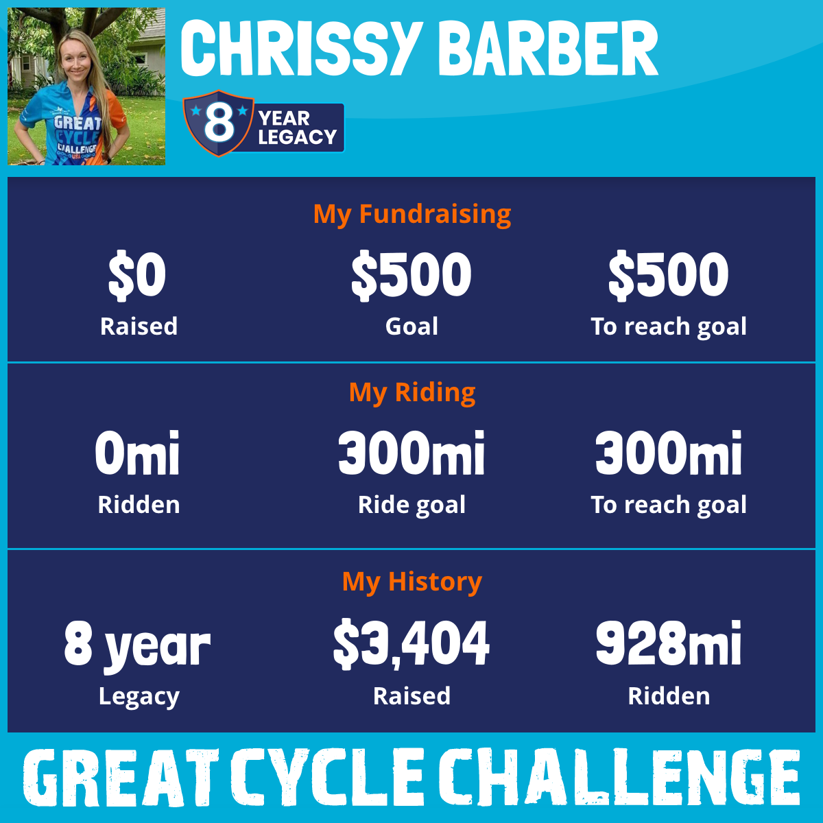 Hello family/friends, This September I'm riding 300 miles in the Great Cycle Challenge! This challenge helps raise awareness and lifts spirits in the hope of finding a cure to fight kids' cancer!