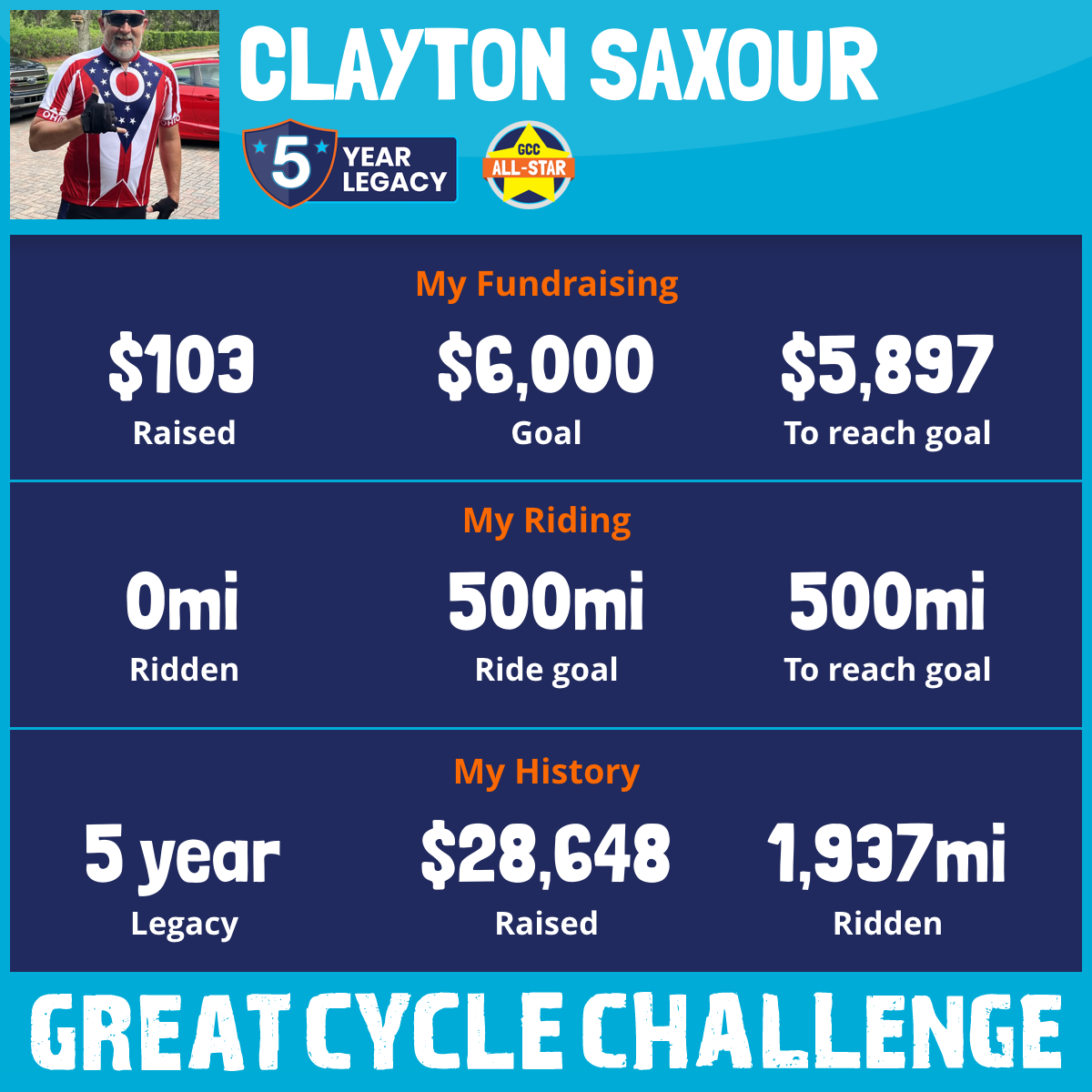 500 mi Ridden$8,838 Raised2023