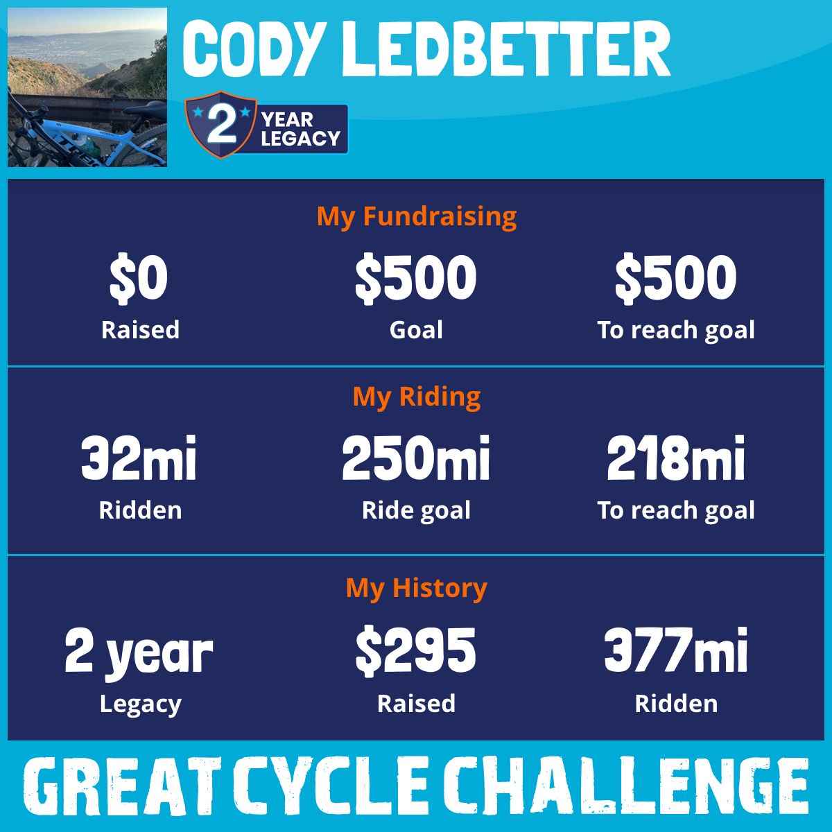 300 mi Ridden$908 Raised2025