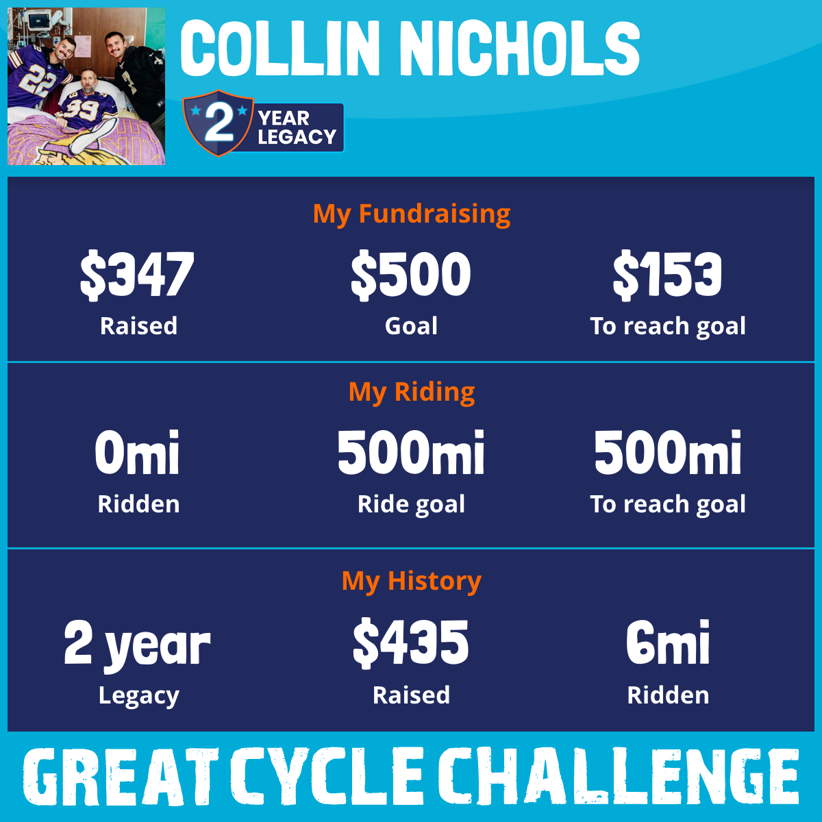So I am raising funds through my challenge to help these kids and support Children's Cancer Research Fund to allow them to continue their work to develop lifesaving treatments and find a cure for childhood cancer.