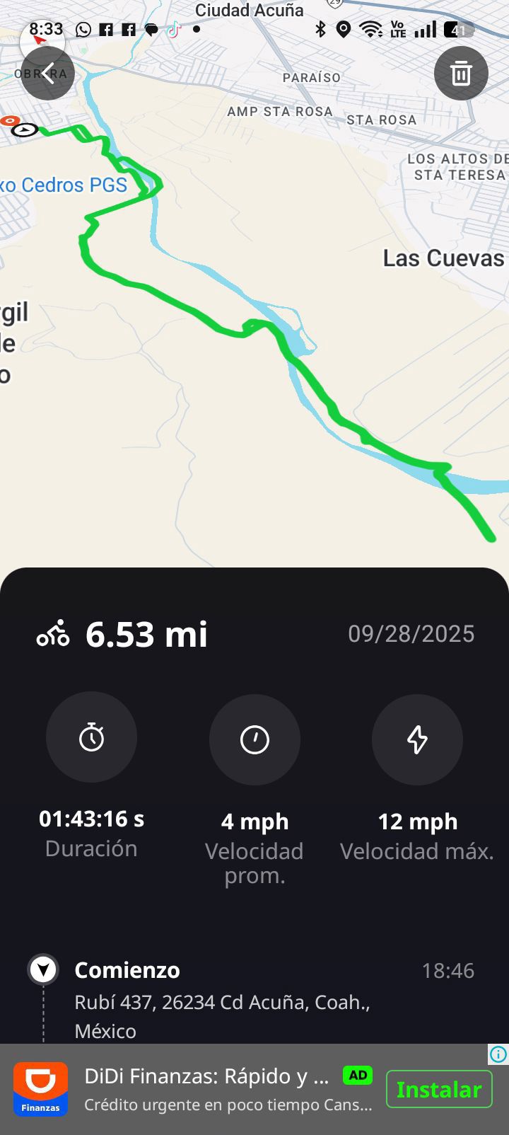 6.4 mi ride - Cuevas 2 - Tuesday, September 16, 2025