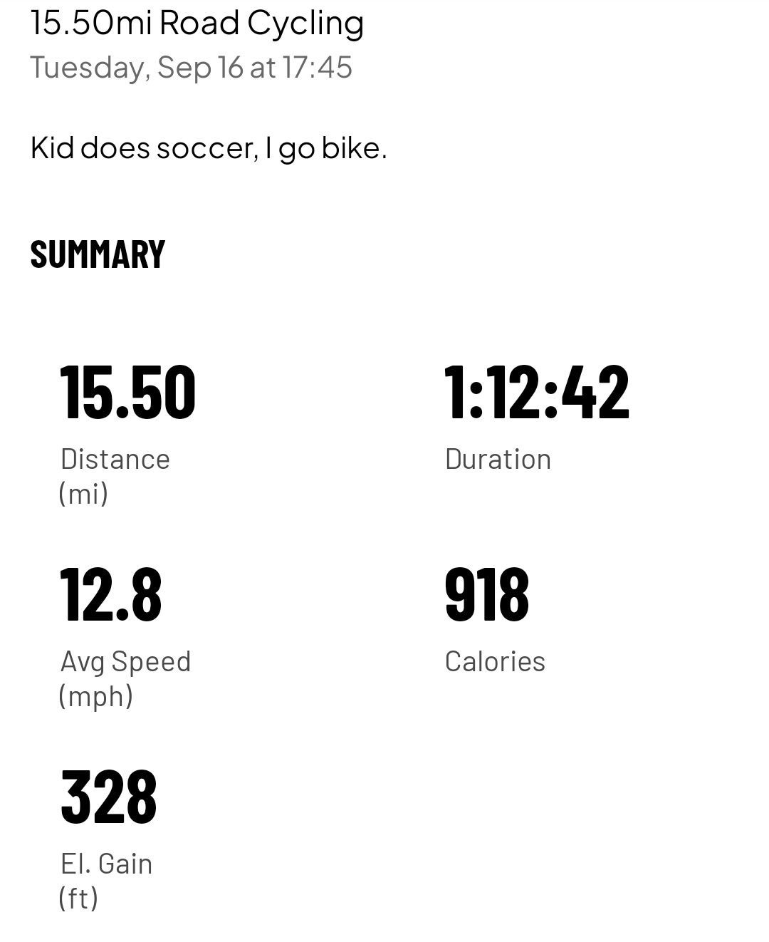 15.5 mi ride - Ride 8 - Tuesday, September 16, 2025