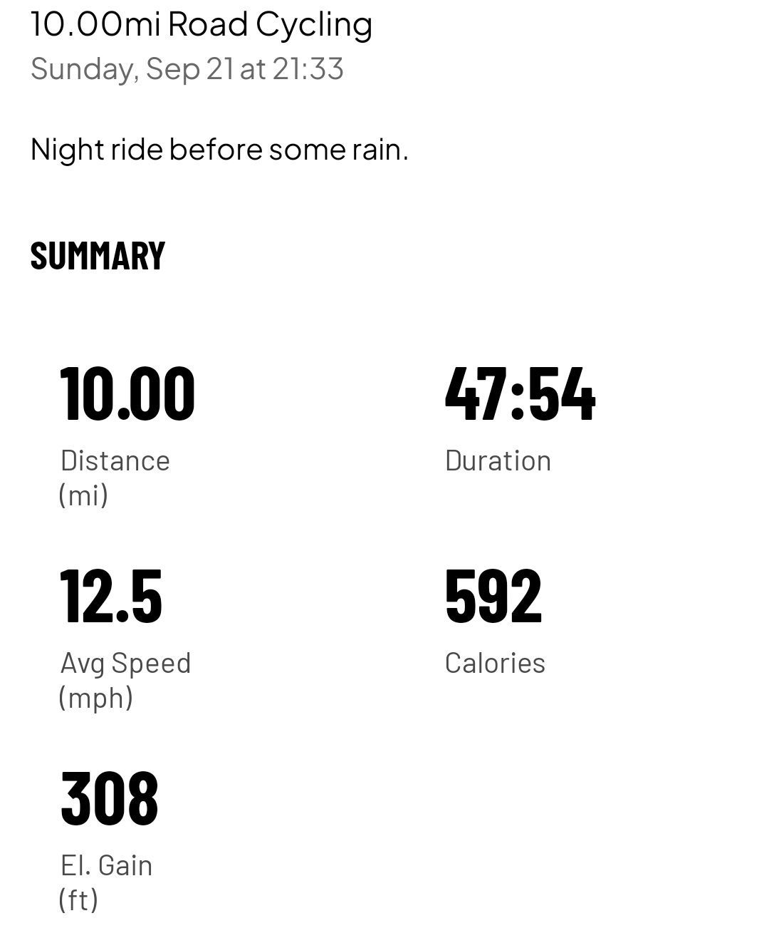 10.0 mi ride - Ride 9 - Sunday, September 21, 2025