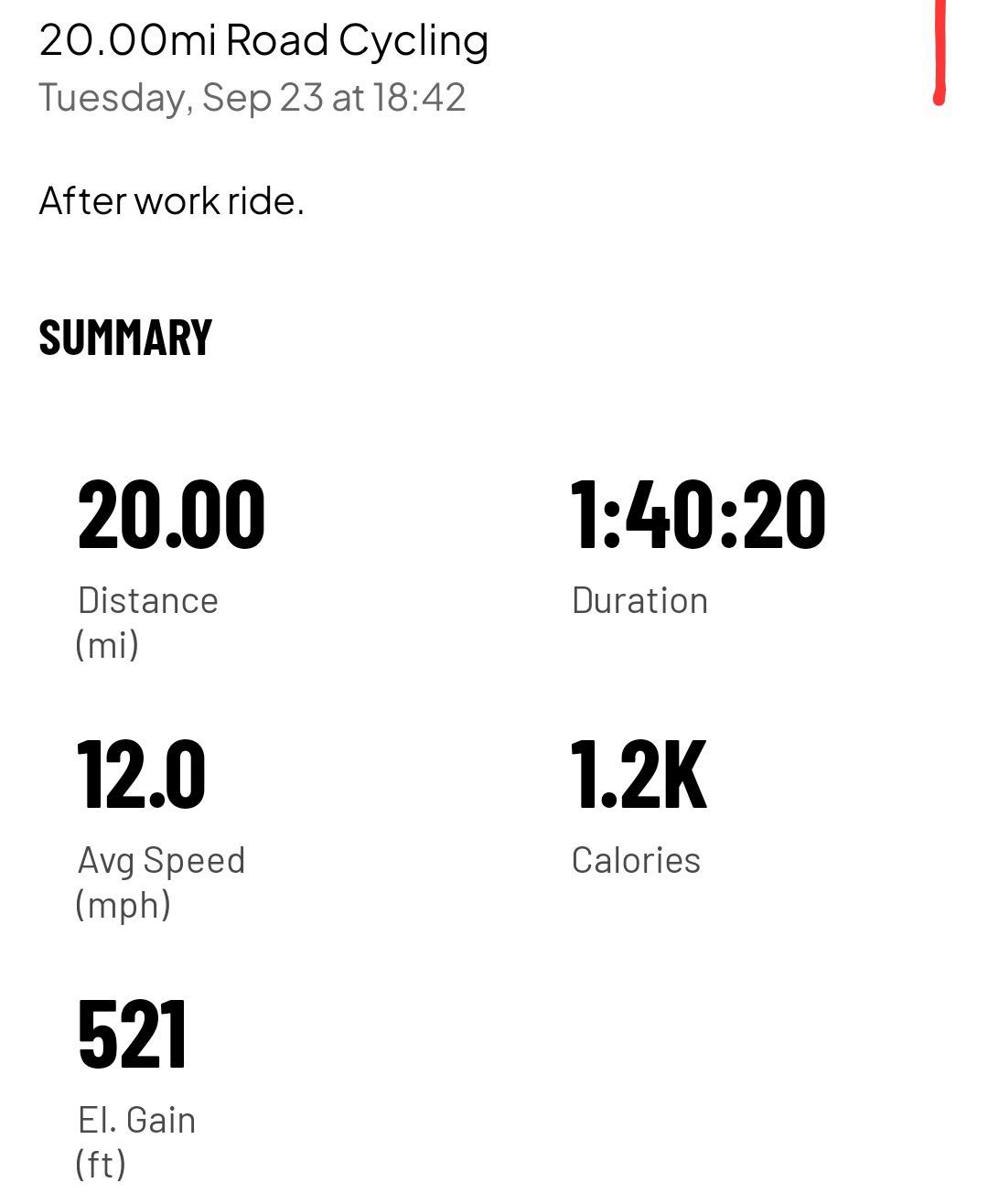 20.0 mi ride - Ride 10 - Tuesday, September 23, 2025