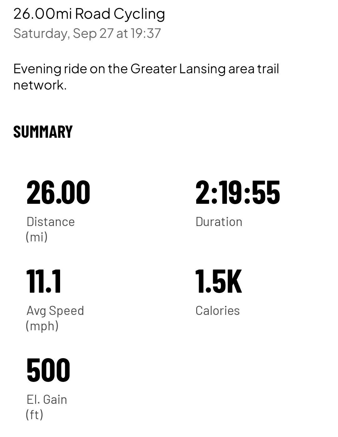 26.0 mi ride - Ride 11 - Saturday, September 27, 2025