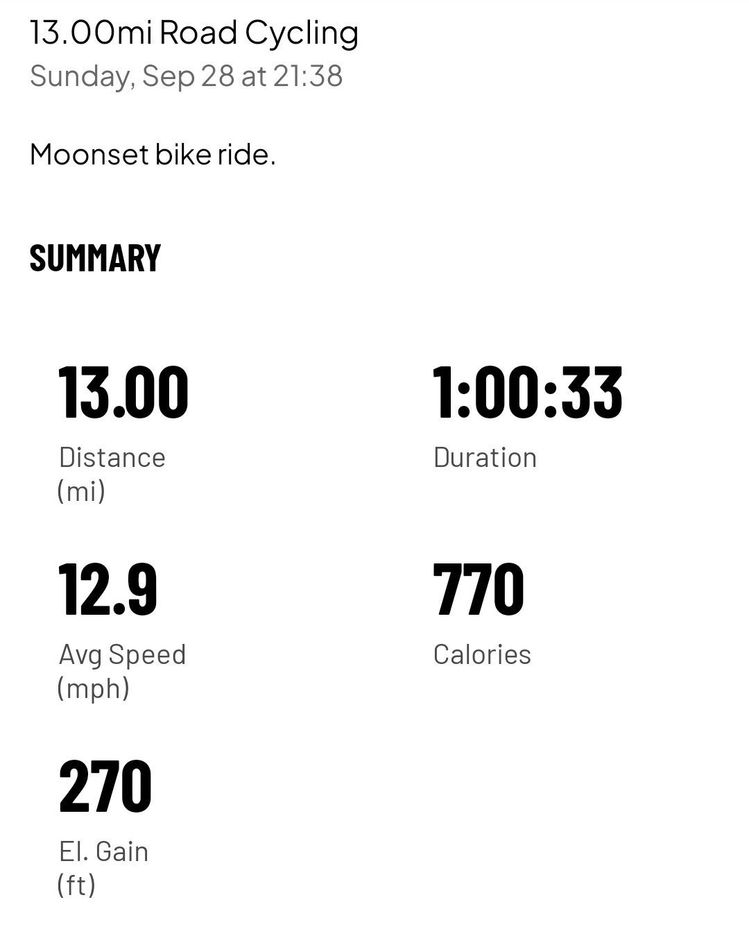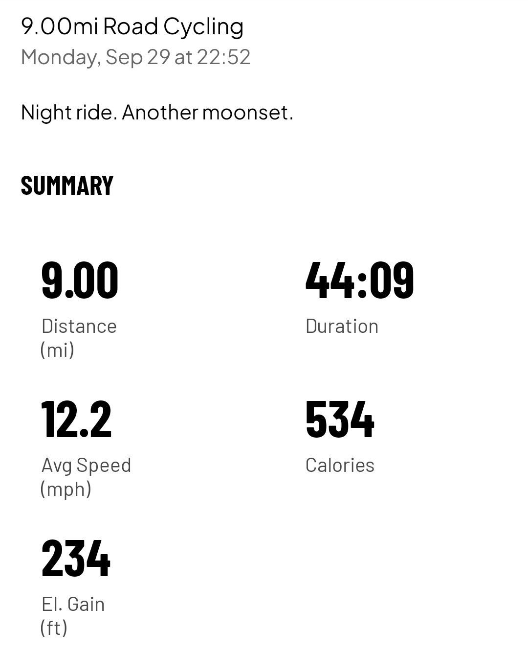 9.0 mi ride - Ride 13 - Monday, September 29, 2025