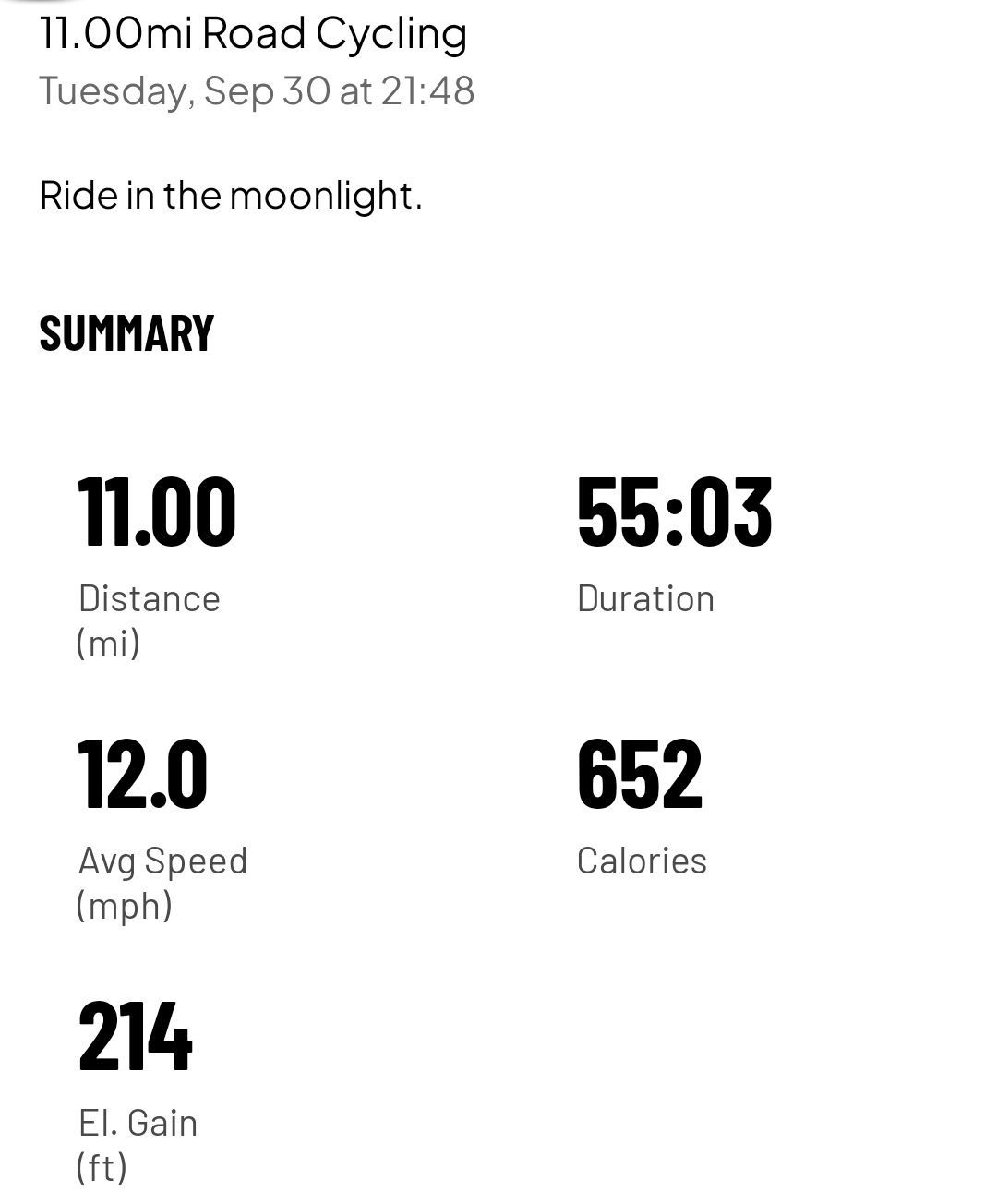 11.0 mi ride - Ride 14 - Tuesday, September 30, 2025