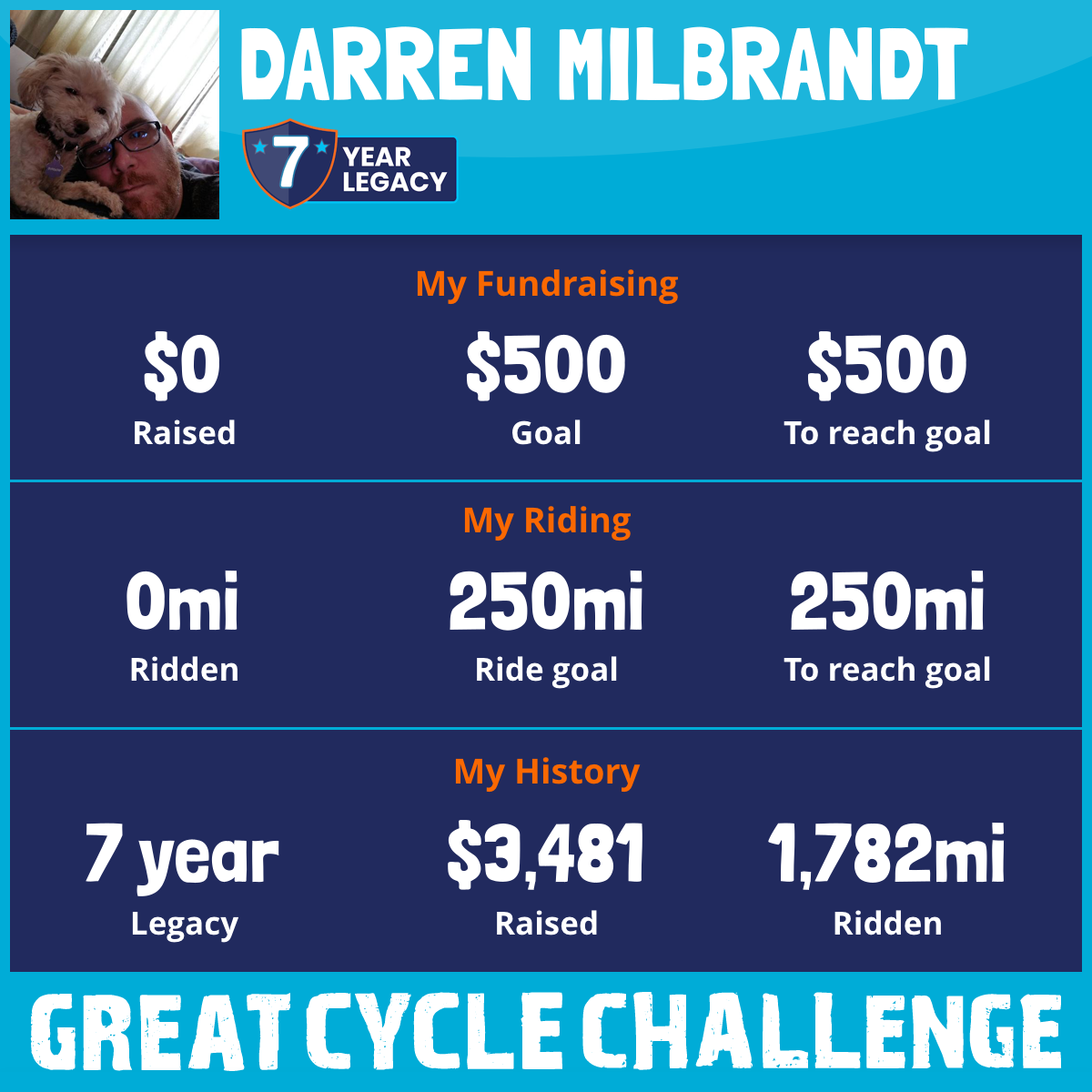 I've raised $0 My goal is $500 Donate Now