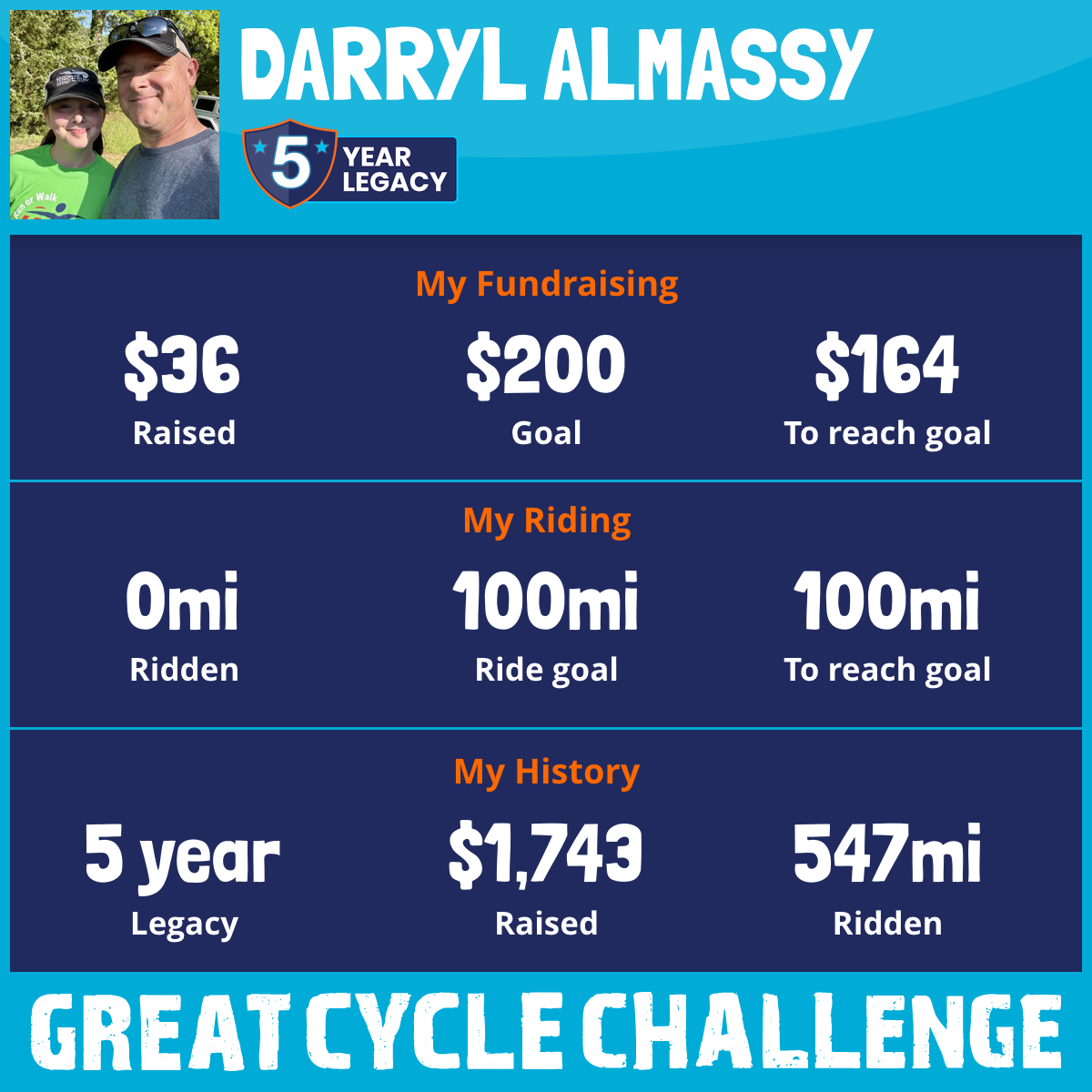 I am riding 100 mi to fight kids' cancer and save little lives. Please sponsor me to support my challenge!