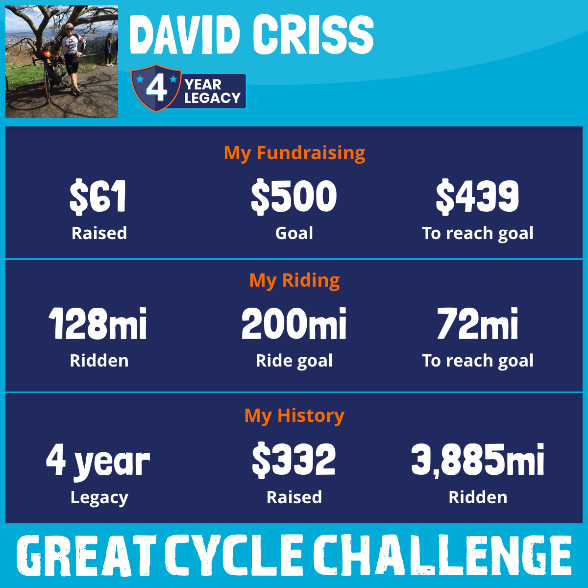 2,158 mi Ridden$185 Raised2017