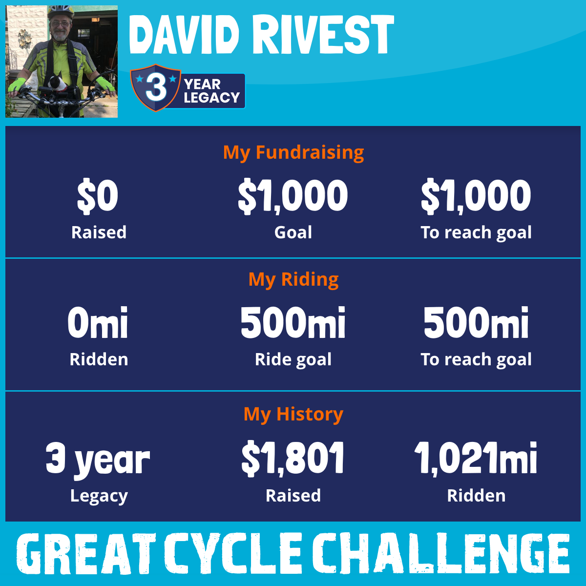This September, I am once again, taking part in the Great Cycle Challenge to fight kids' cancer! This is my 3rd year participating in this challenge and my hope is to again meet (and exceed) my goals by riding 400 miles and raising $1000!