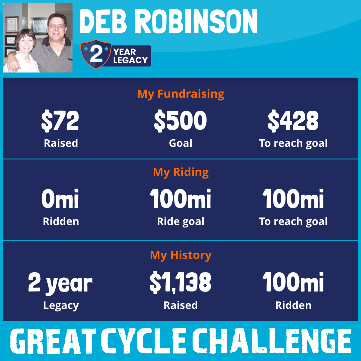I am riding 100 mi in memory of my brother, Bobby. Please sponsor me and support my challenge to fight kids' cancer and save little lives.