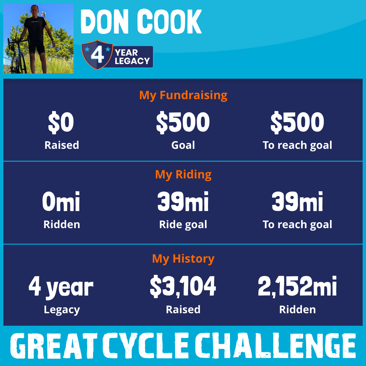 1,000 mi Ridden$1,098 Raised2024