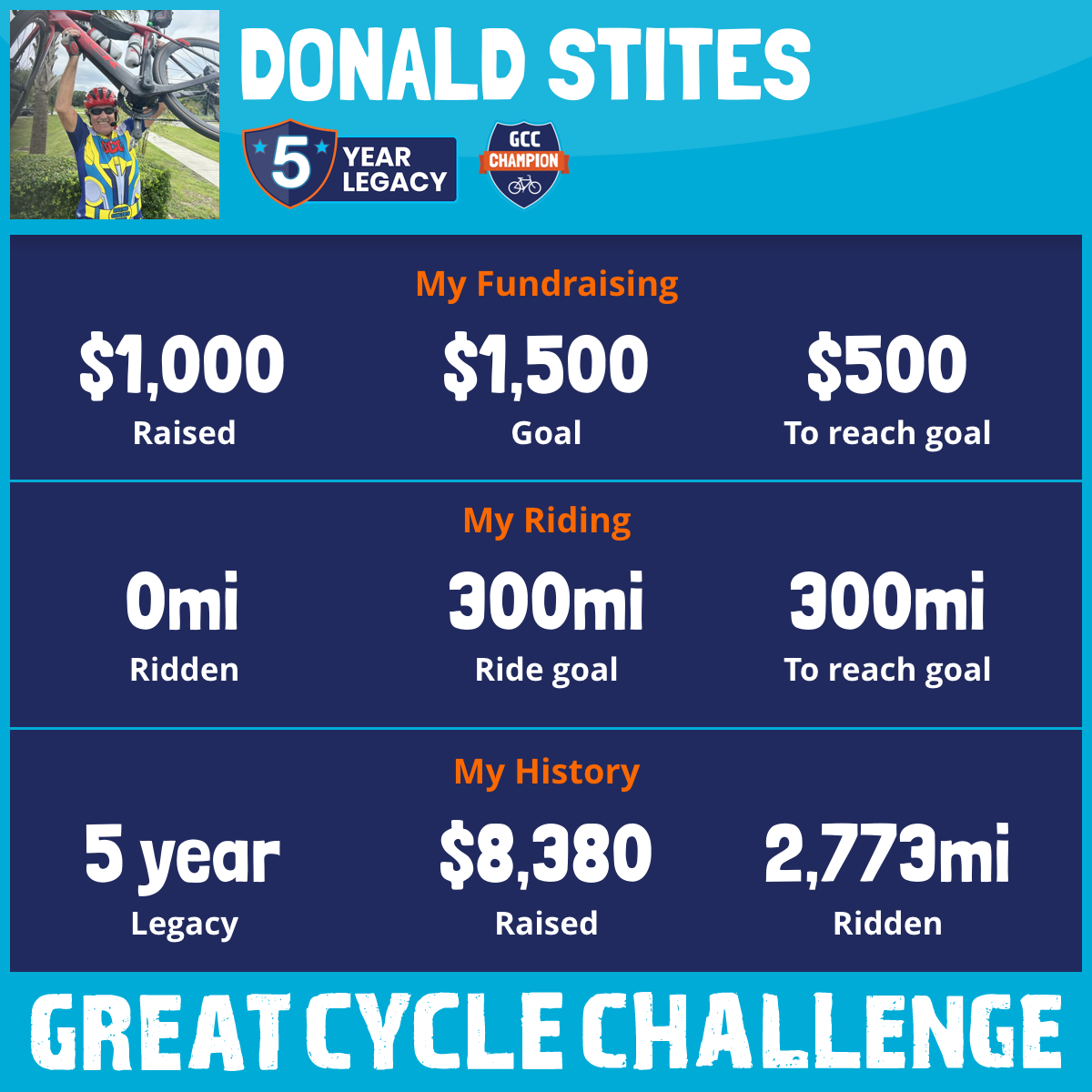 485 mi Ridden$1,618 Raised2022