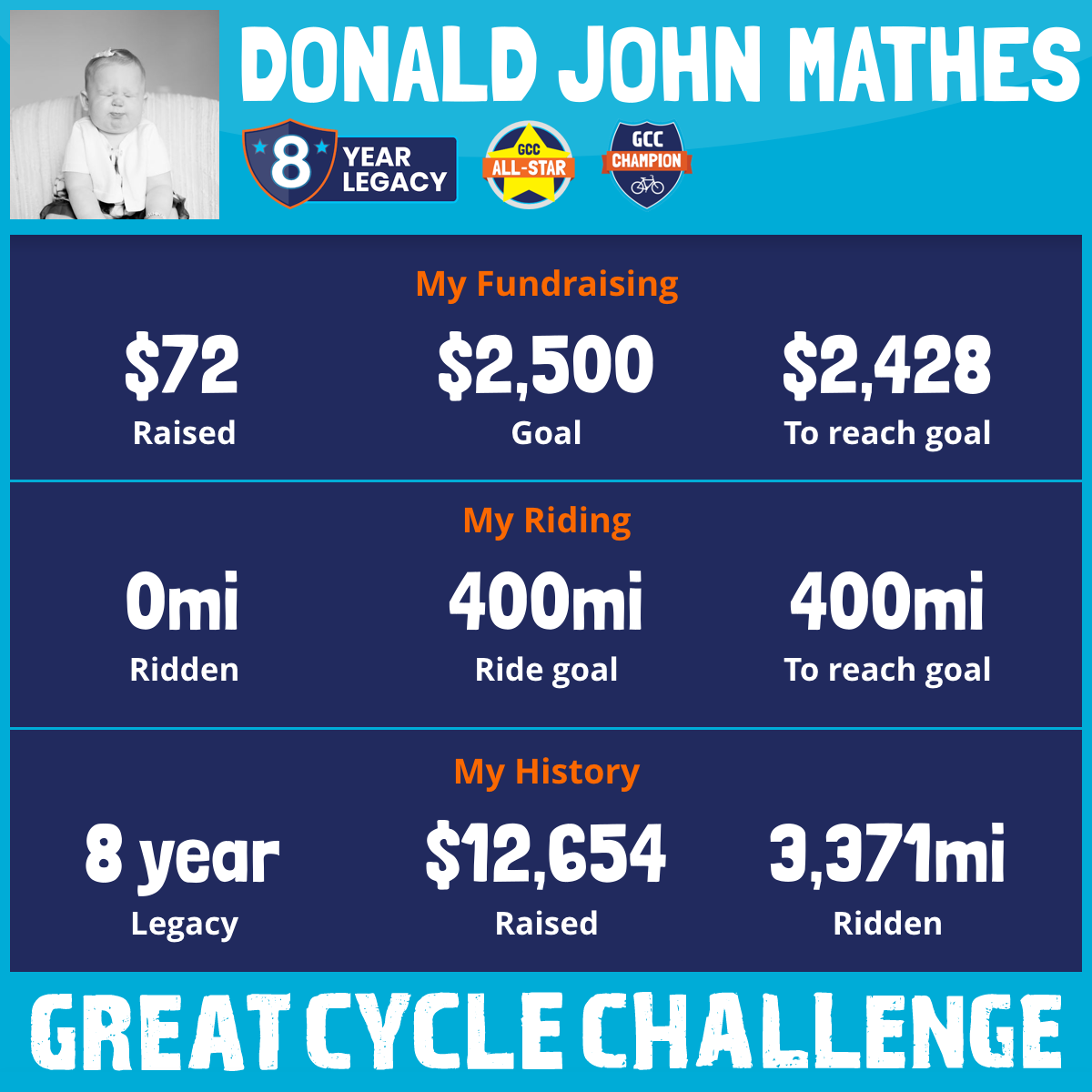 I am riding 400 mi to fight kids' cancer and save little lives. Please sponsor me to support my challenge!