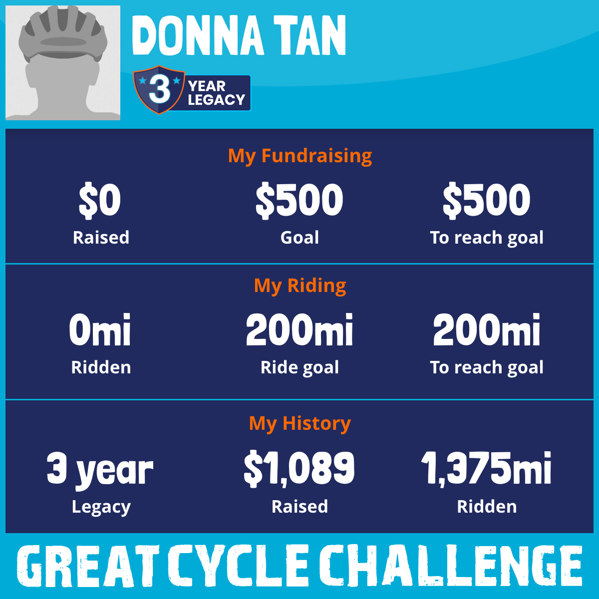 I am riding 200 mi in memory of My favorite Sister. Please sponsor me and support my challenge to fight kids' cancer and save little lives.