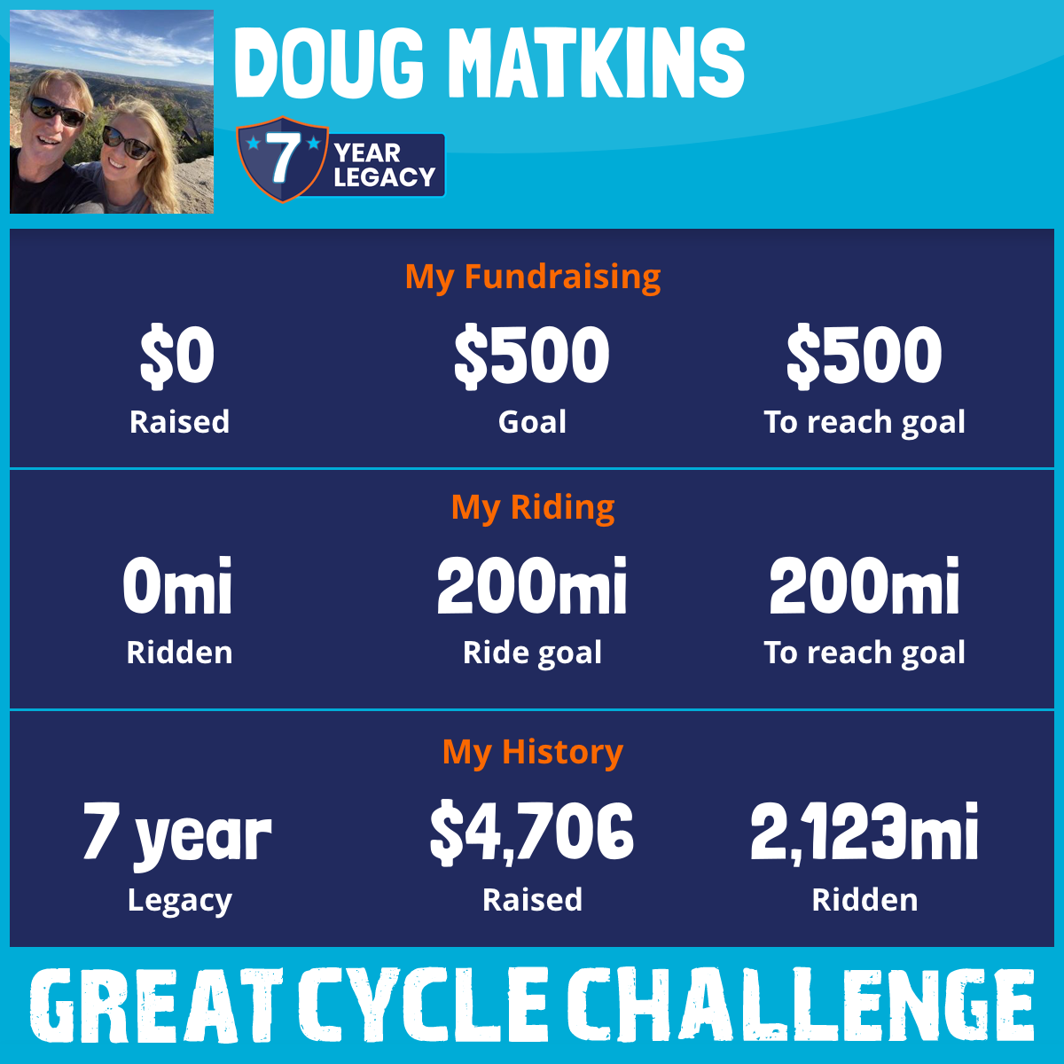 For the 6th consecutive year, I am taking part in the Great Cycle Challenge to fight kids' cancer.