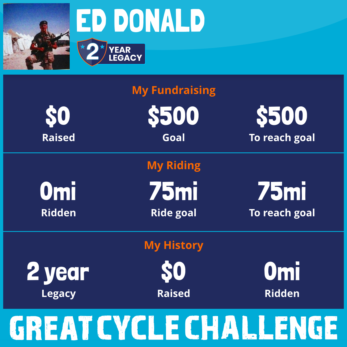 I am riding 75 mi in memory of my myself, Ed. Donald. Please sponsor me and support my challenge to fight kids' cancer and save little lives.